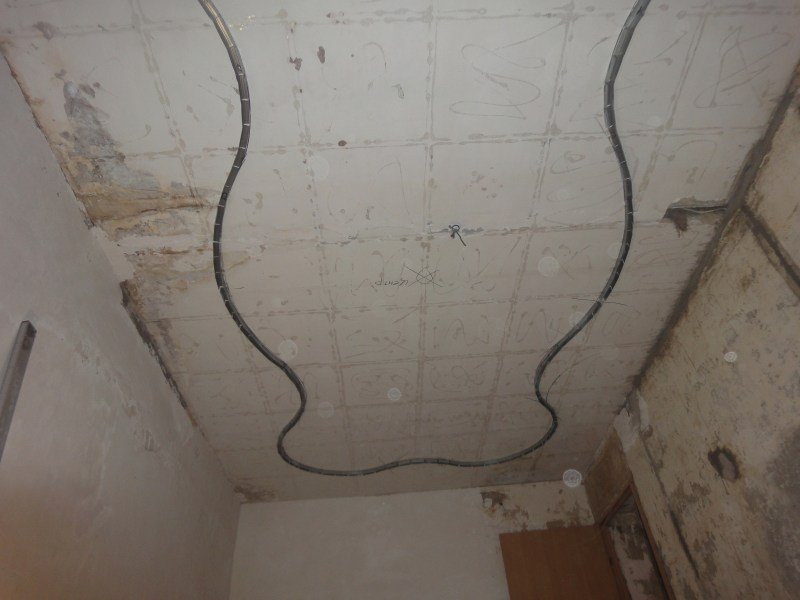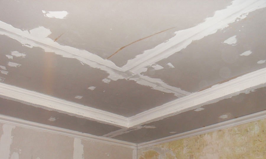 Si está disponible, el viejo acabado se elimina del techo, la superficie se limpia de manchas.
