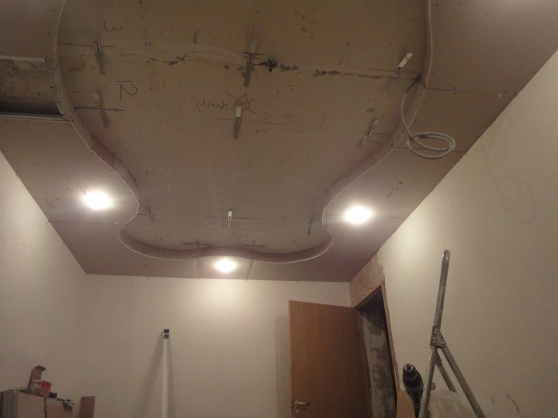El número de niveles de techo de placas de yeso depende directamente de su altura. Por ejemplo, las estructuras de marco pueden bajar medio metro.