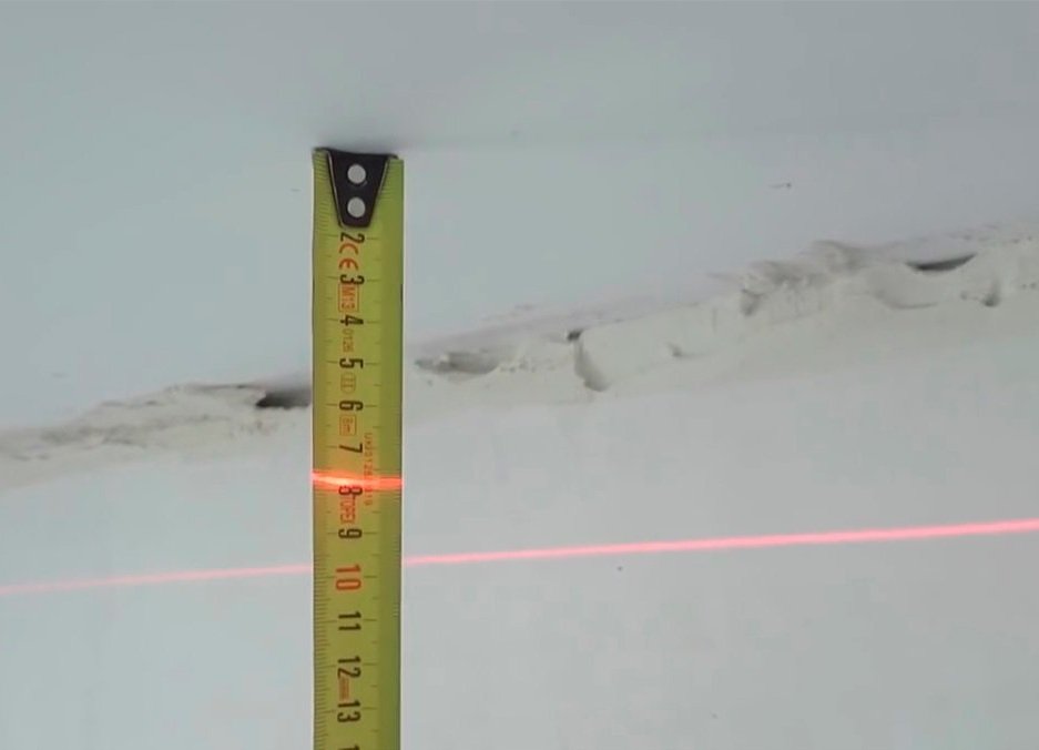El trabajo comienza con la determinación del ángulo más bajo en la habitación. Para esto, el nivel láser es ideal, si no hay ninguno, se utiliza una cinta métrica ordinaria. En este punto se pone la primera marca. Dependiendo de la presencia de elementos de iluminación incorporados, la distancia desde el techo será de 5 mm si están ausentes, 9 mm cuando se colocan.