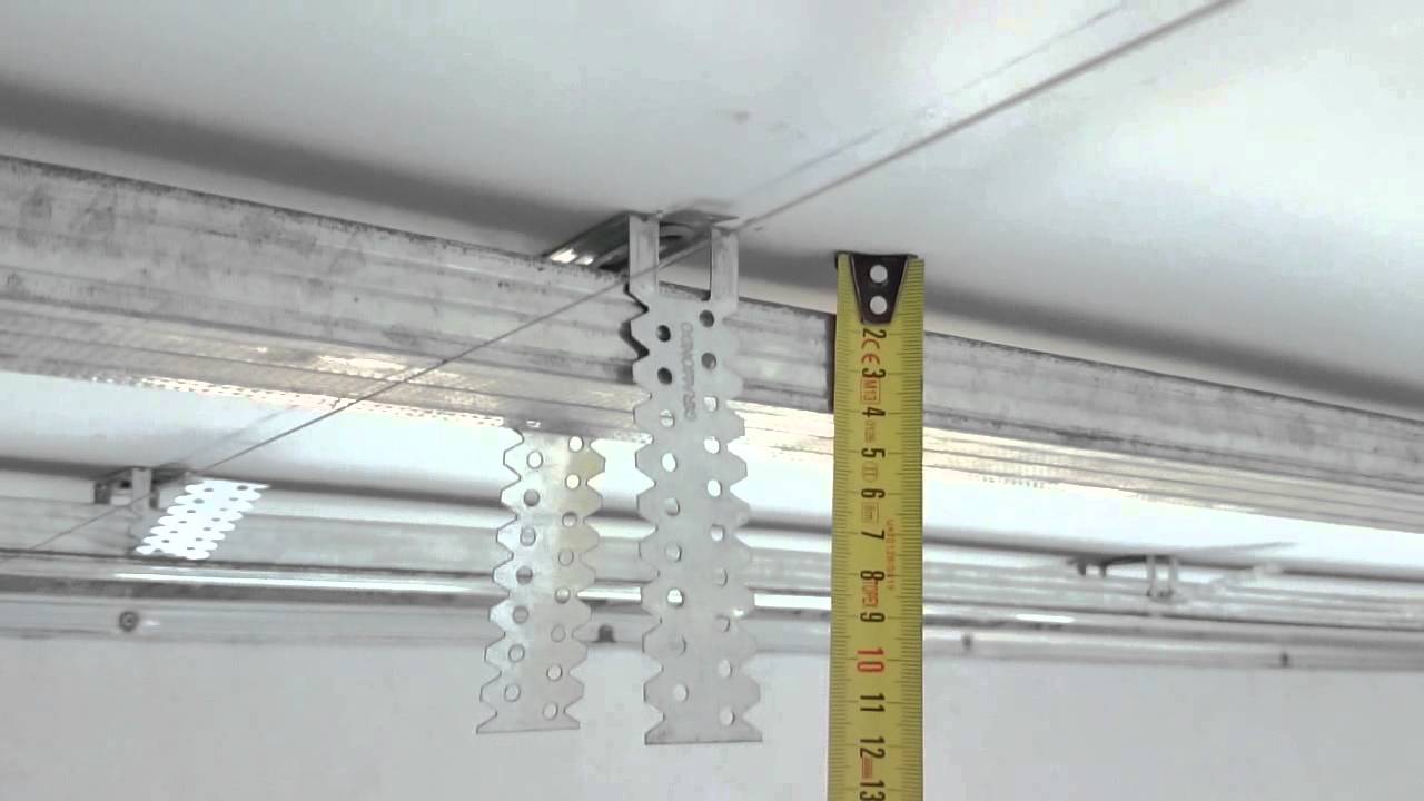 Contamos el número de suspensiones necesarias. La distancia entre ellos es de 60 cm.Según los cálculos anteriores, obtenemos que para un paso de fijación de 40 cm, esta cifra será de 45: 0.6 = 75 piezas, a su vez, para un paso de 50 cm - 36: 0.6 = 60 piezas.