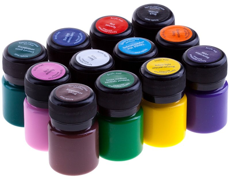 La composición incluye pigmentos naturales, sintéticos, agua, aglutinantes.Los acrílicos están disponibles en una amplia gama de colores. Pueden ser transparentes, cubriendo, crear el efecto de vidrieras. El material varía en composición y método de solidificación. Para la tarea, es mejor elegir una base de agua que se seque rápidamente a temperatura ambiente. Los principales beneficios incluyen los siguientes hechos: