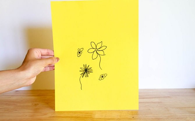 Aplicamos la plantilla preparada, utilizando el marcador transferimos los contornos de la imagen al plano del objeto.