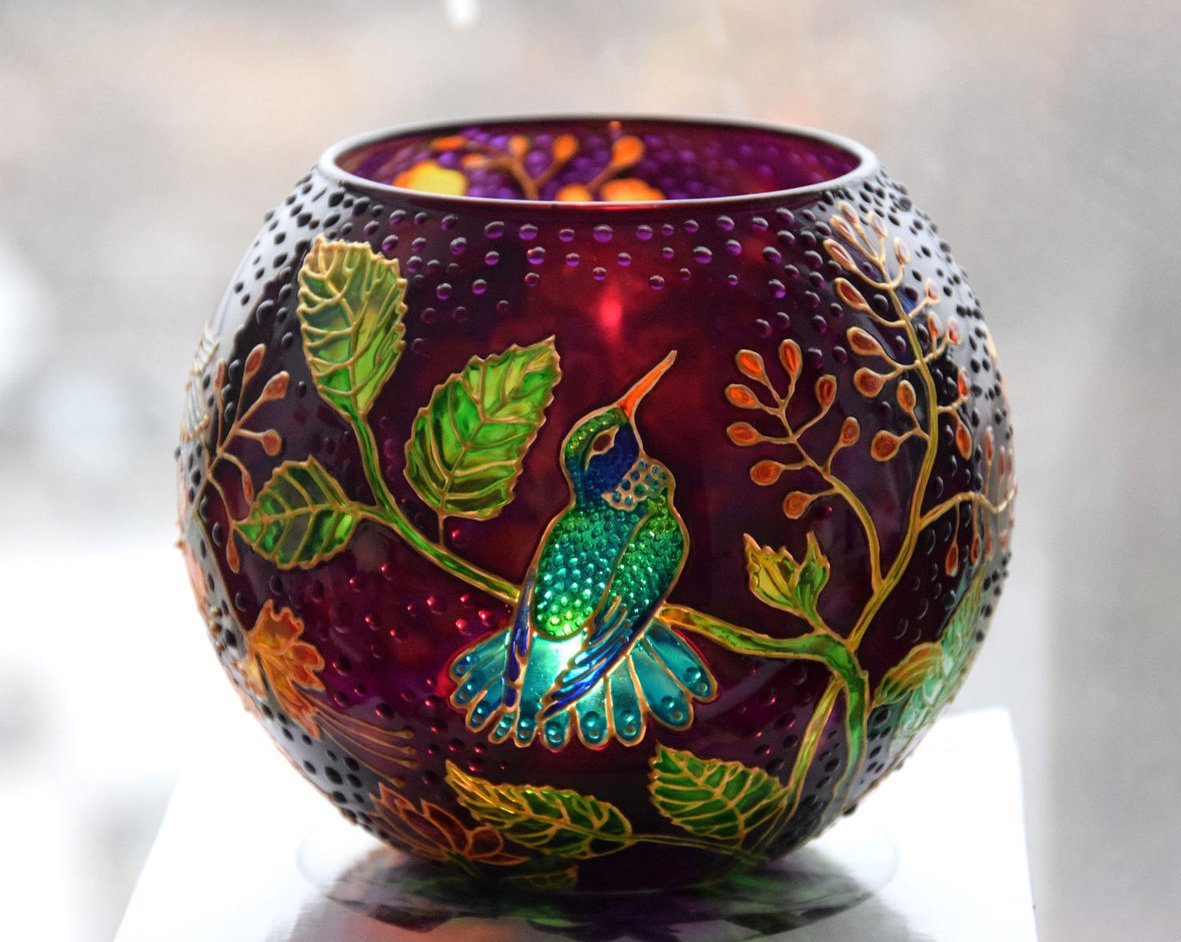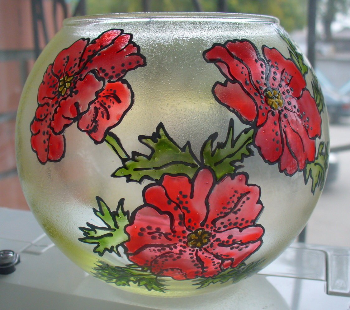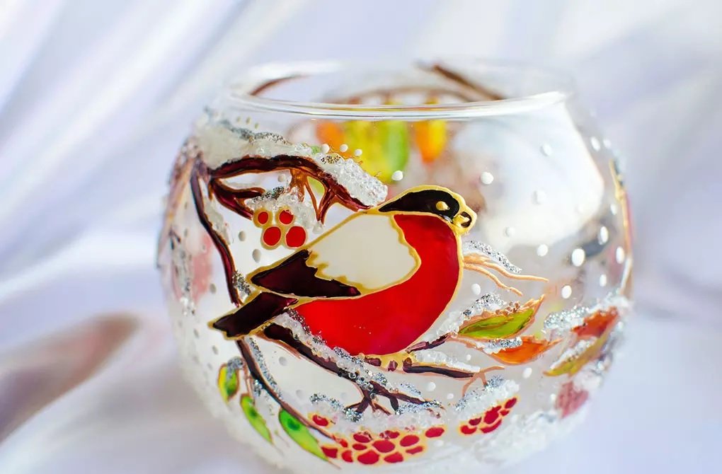 Puede dibujar sobre una superficie de vidrio usted mismo a cualquier edad, incluso compartido por todos los miembros de la familia. Con cada nueva experiencia artesanal se ganará. En el futuro, las habilidades adquiridas le permitirán crear un dibujo magnífico y original en la superficie, convertir un recipiente u objeto de vidrio en una obra maestra. Lo principal en este negocio es la paciencia y la precisión.