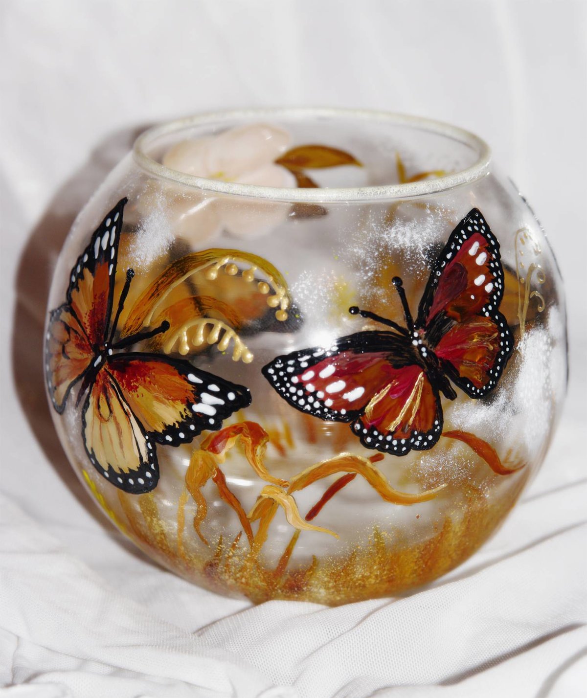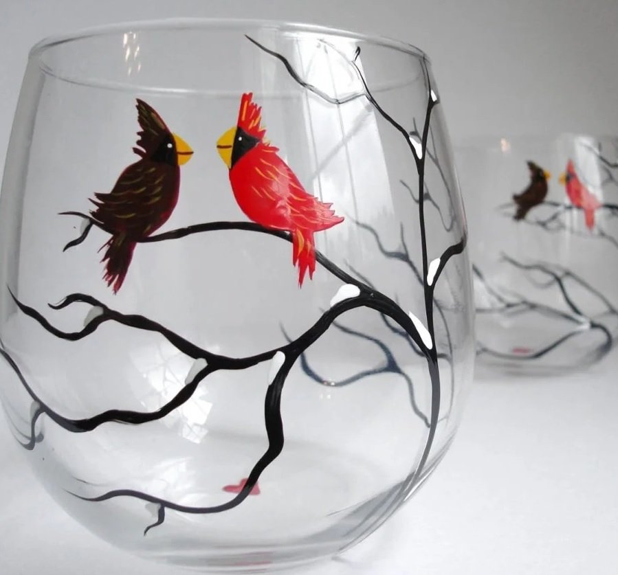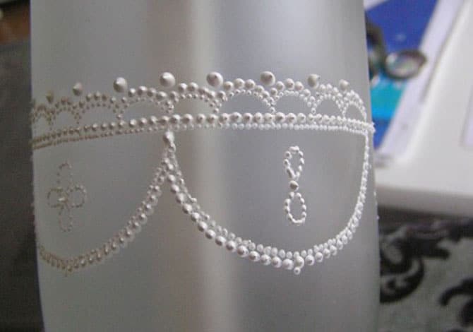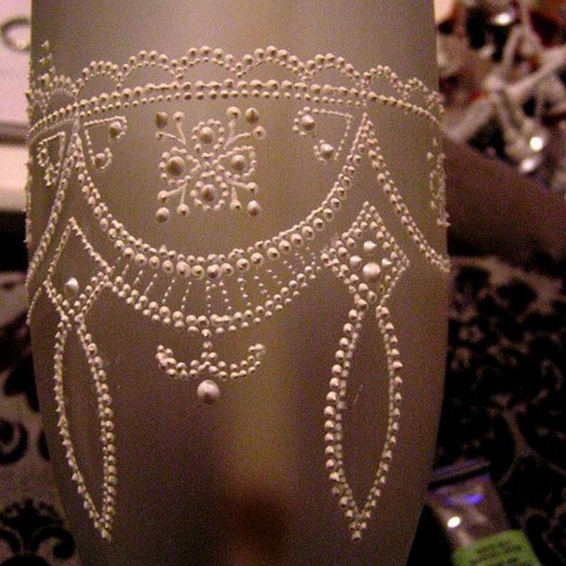 Cerámica, cristalería, pintada con un marcador para pintar sobre vidrio, se ve muy original. Puede trabajar con materiales de varias clases y tamaños.El grosor de la varilla, la suavidad de la línea dependerá de tales indicadores.