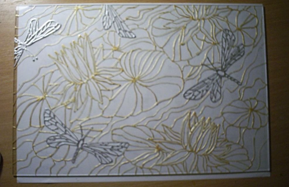 Una vez eliminada la plantilla, procedemos a la aplicación de pinturas de contorno a las líneas obtenidas. Es mejor usar una composición gruesa, con ella puedes crear las líneas más uniformes.