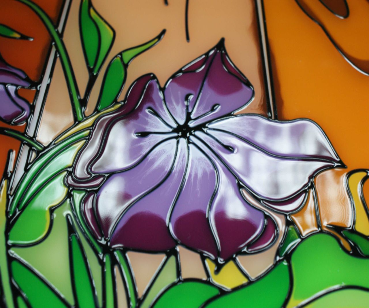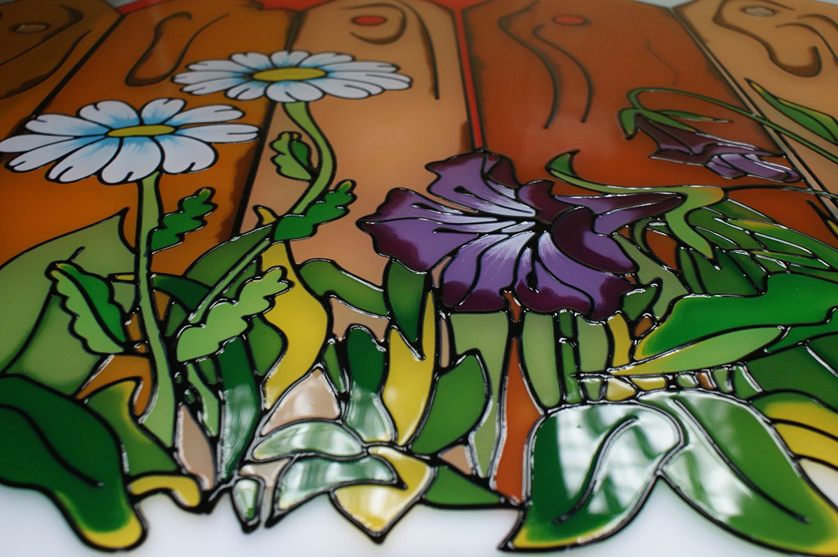 Pintado Absolutamente todas las áreas de vidrio están pintadas. Las pinturas son líquidas, se extienden y mezclan, creando manchas, nuevos tonos;