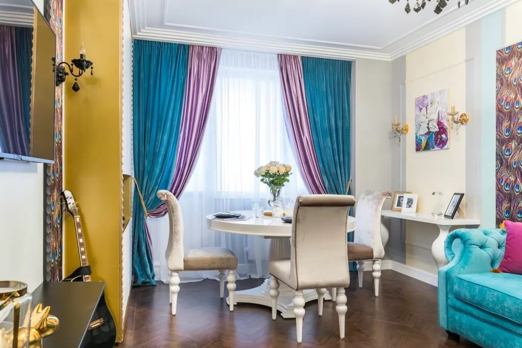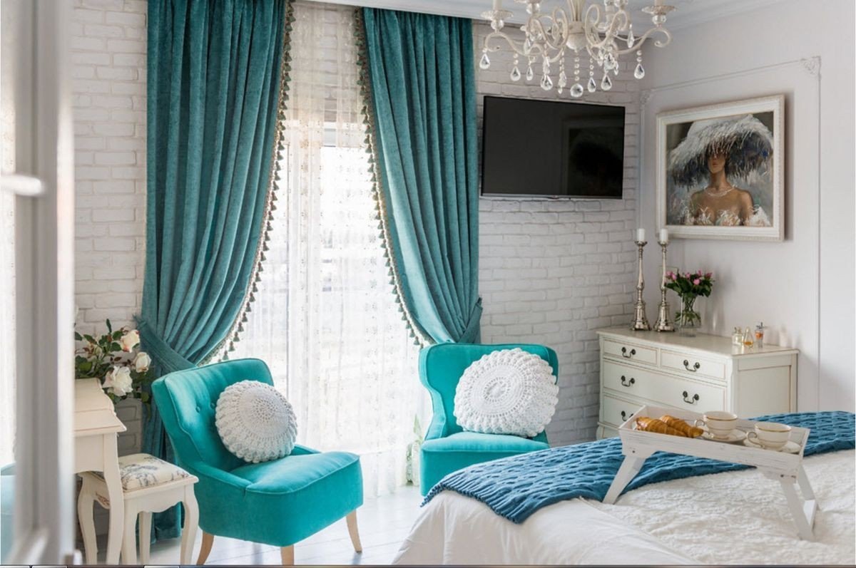 Las cortinas llevan no solo una carga funcional, sino que también son un elemento decorativo importante de un apartamento. Afectan la apariencia de la habitación en su conjunto y respaldan su estilo. Las cortinas están en cualquier apartamento. Vienen en diferentes colores. A la venta puede encontrar una variedad de modelos de cortinas: enrolladas, tul, cortinas, cortinas, hilo, francés, con un lambrequin, en los ojales. Se cosen de un velo, organza, lino, algodón, jacquard, satén, seda y otros materiales. Cualquiera podrá elegir cortinas a su gusto y diseñar una habitación con su diseño favorito. Si desea una armonía en el interior, entonces es mejor recurrir a especialistas para obtener ayuda. Los diseñadores conocen las últimas tendencias y ayudarán a diseñar bellamente la ventana. Hoy la tendencia es el color turquesa, por lo que a menudo se usa en textiles. Este color se considera activo. Debe introducirse en el interior dosificado.