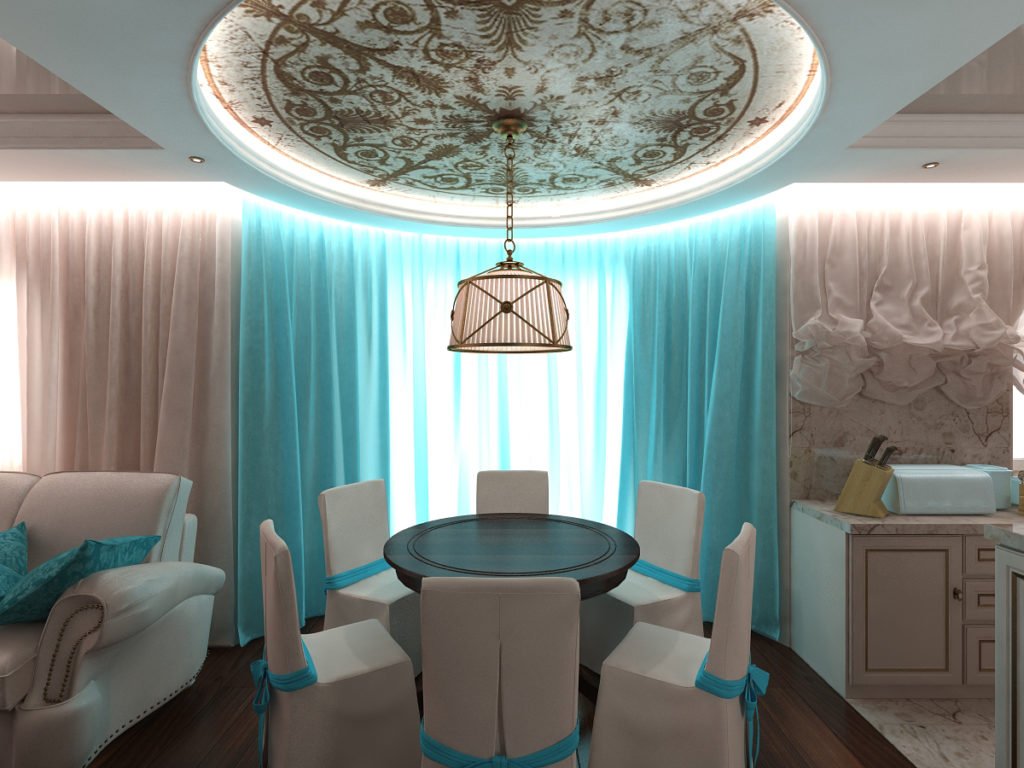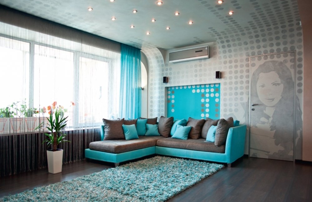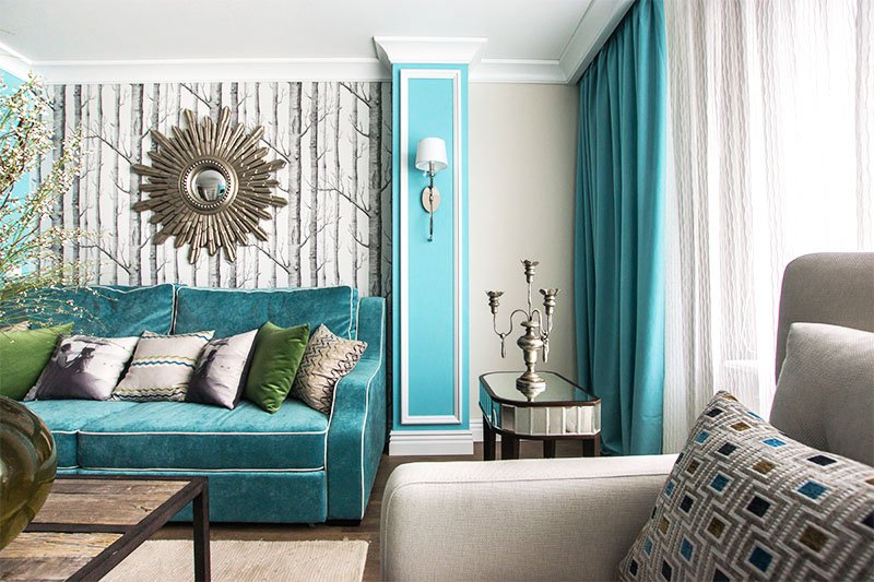 El color turquesa puede ser doble. Por un lado, mejora la atención, calma, fortalece la autoconfianza, promueve el desarrollo de la intuición y el crecimiento espiritual, y es adecuado para personas creativas y sensibles. Por otro lado, la turquesa es egoísta, inexpugnable, fría. Por eso es tan importante elegir los tonos correctos para el interior. A pesar de que el turquesa es un color fuerte, no te cansas de él. El tono turquesa seleccionado correctamente ayuda a mantener la frescura en la habitación.