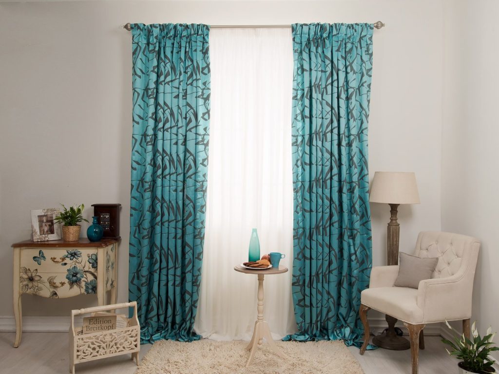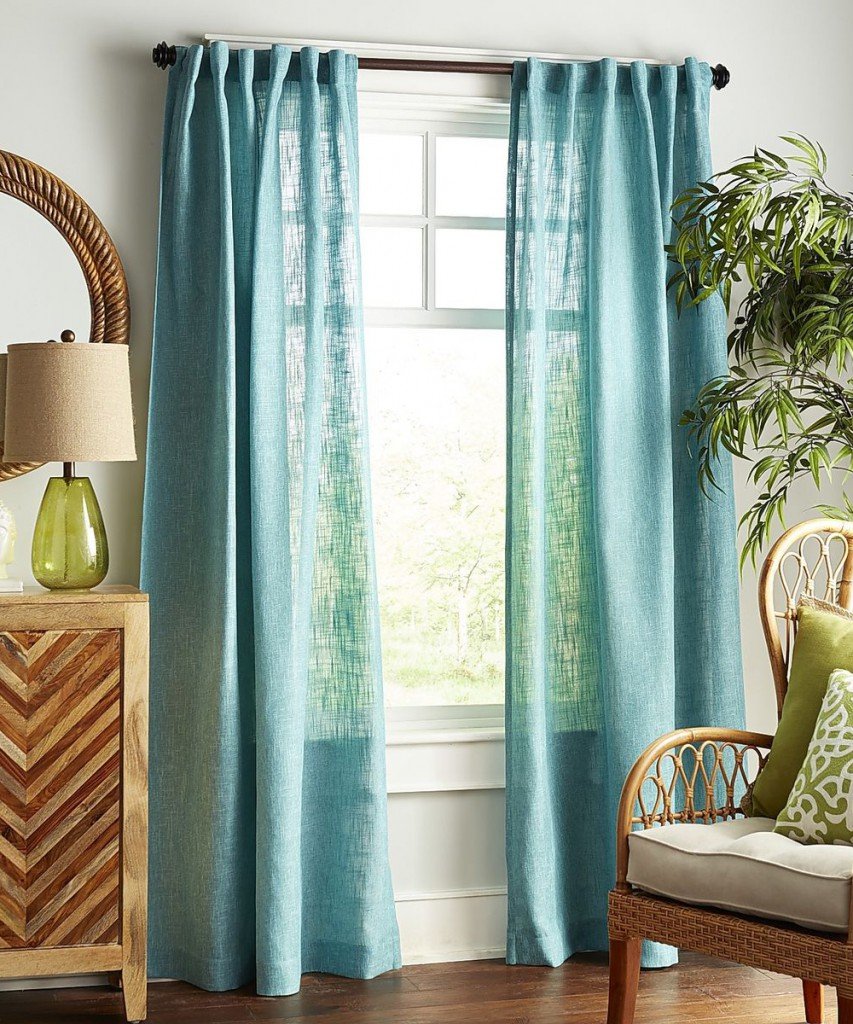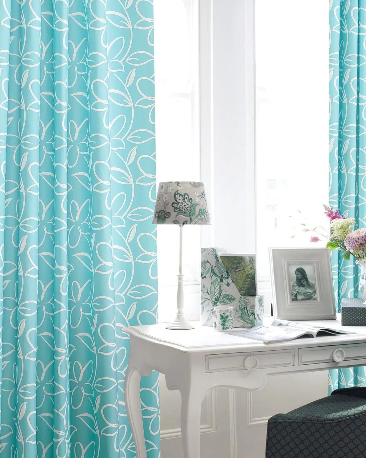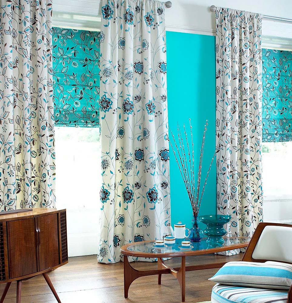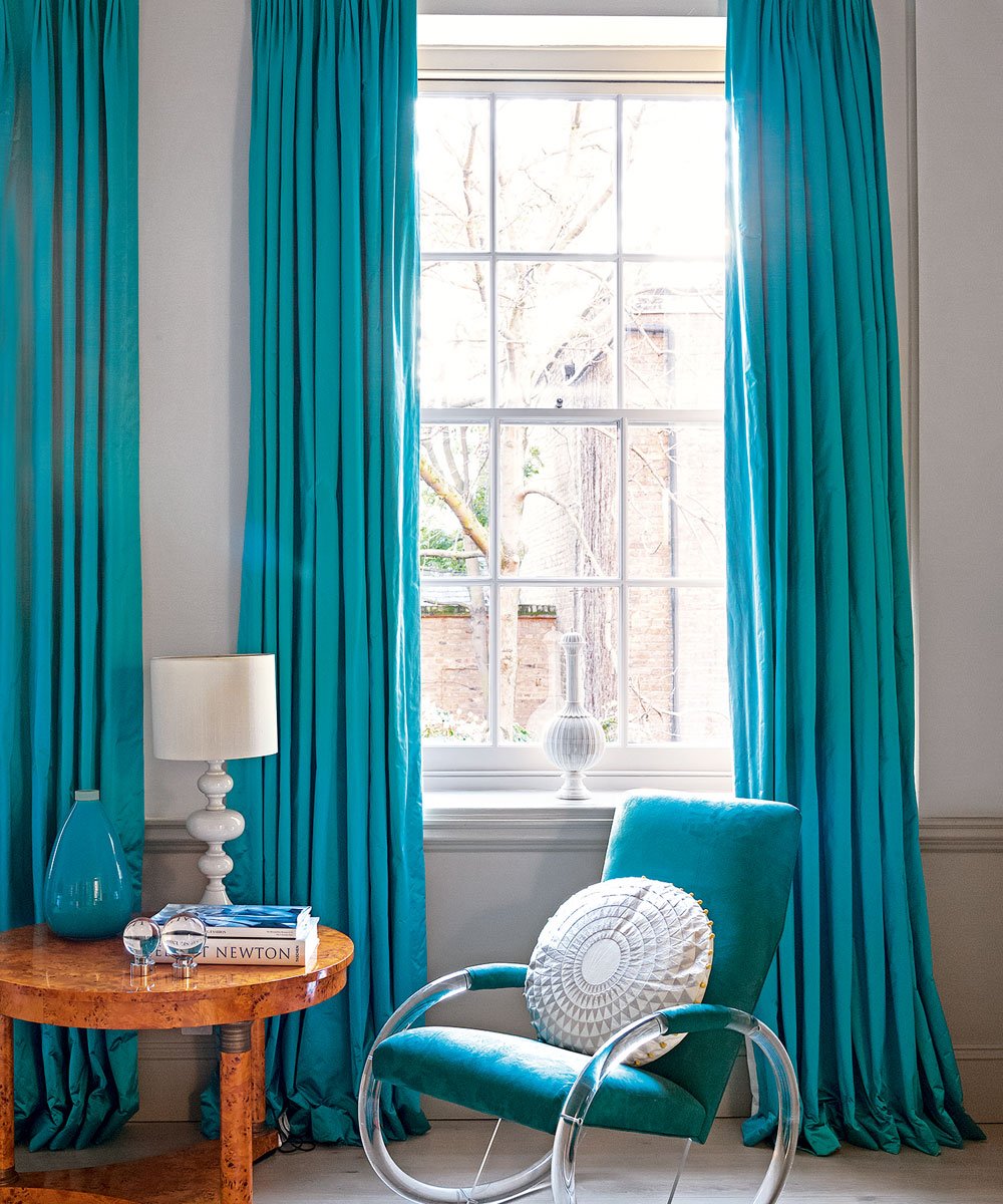 Cortinas turquesas en el interior: tipos de telas, combinaciones de colores.