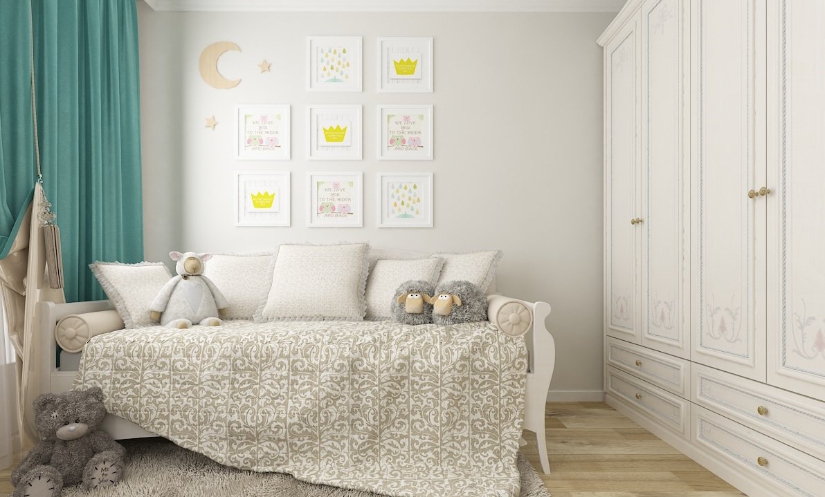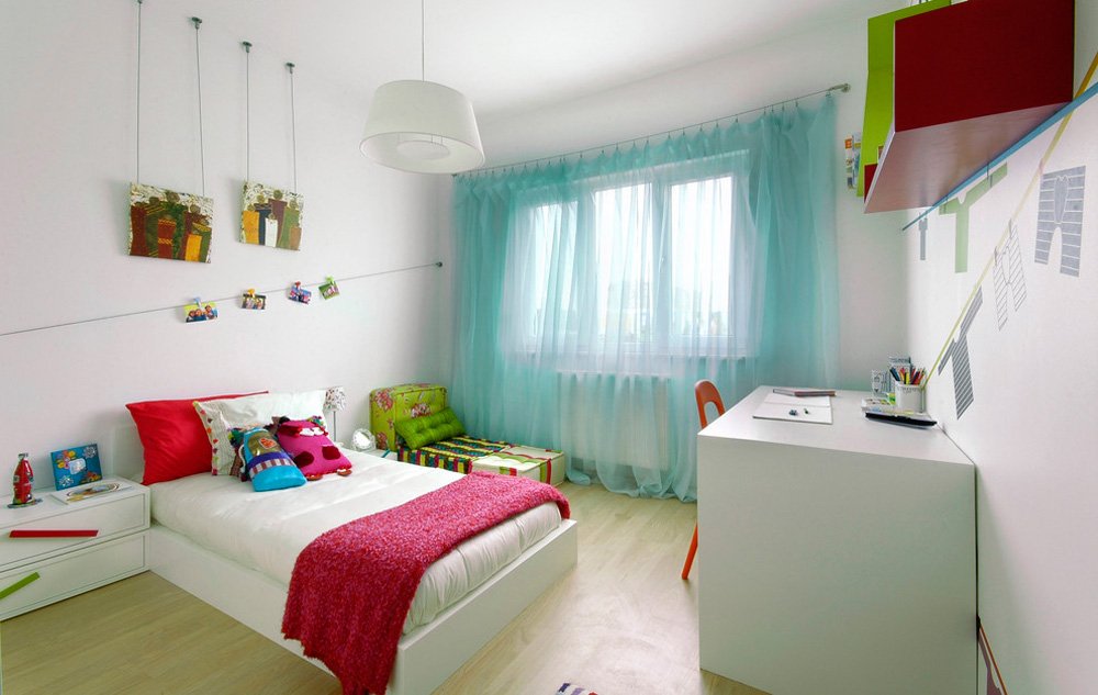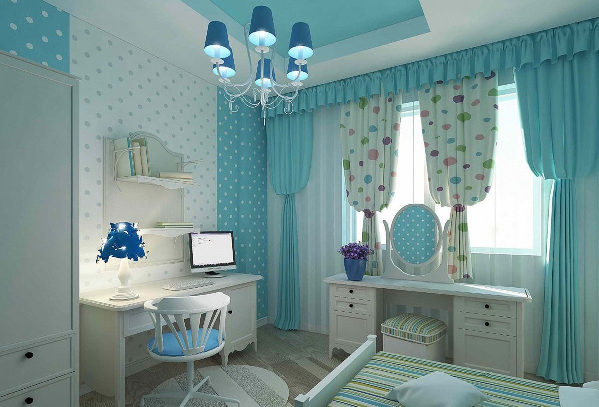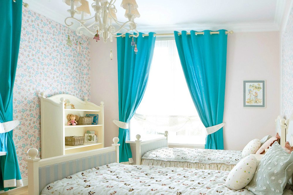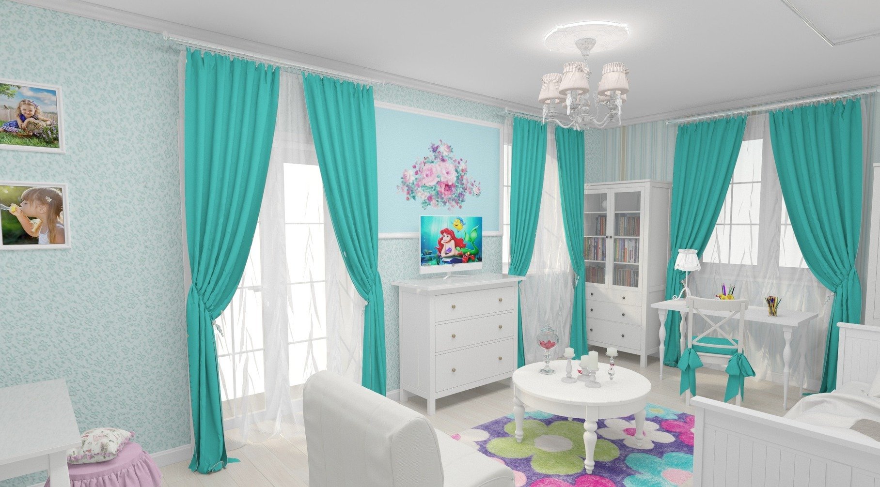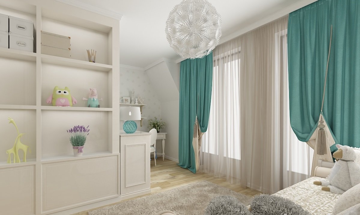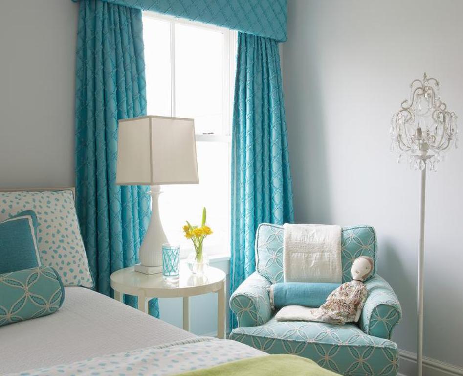 Desde tiempos inmemoriales, ha sido la costumbre de hacer una habitación rosa para una niña y una azul para un niño. Ya se ha convertido en un clásico. ¿Y qué hay de aquellas familias cuyos hijos heterosexuales viven en la misma habitación? Hay una salida: ¡organizar una guardería en colores turquesa! El uso de turquesa en un vivero se considera apropiado. Este color es calmante, por lo que al lado los niños son menos traviesos y se duermen mejor. Las cortinas para la guardería pueden diseñarse en cualquier diseño. Algunos padres prefieren persianas enrollables, cortinas en ojales, composiciones multicapa al estilo francés, etc. En la guardería debe haber mucha luz y aire. Sin embargo, no olvide que la mayoría de los niños duermen durante el día, por lo que se debe proporcionar una cortina de material denso para la ventana. El color turquesa apagado en este caso es preferible al brillante.