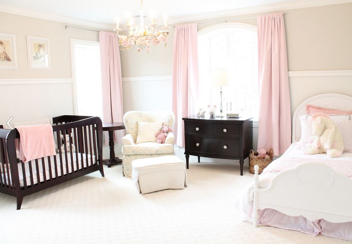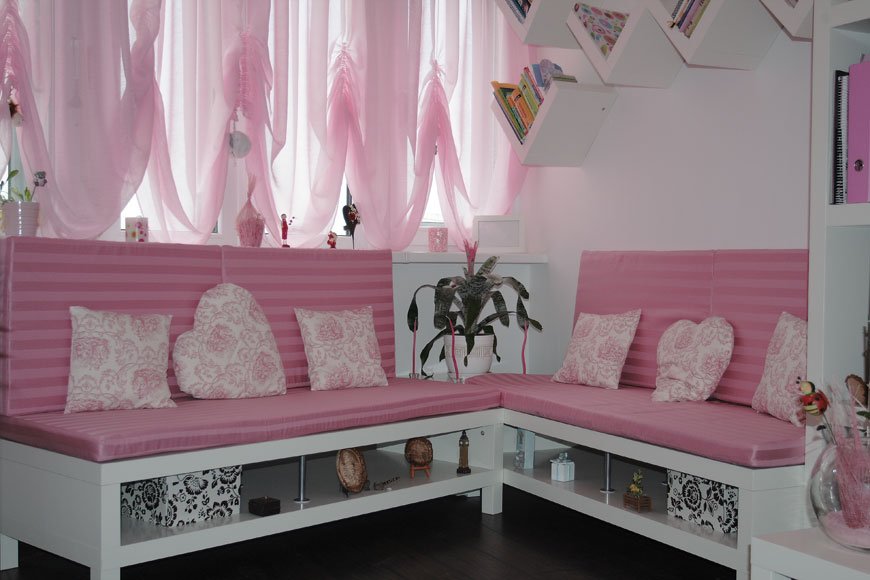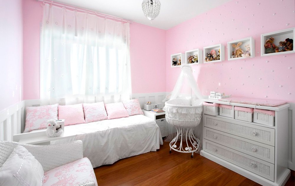 Shabby Chic. Los modelos austriacos blancos y rosas claros son perfectos para tal estilización de la habitación de una niña.