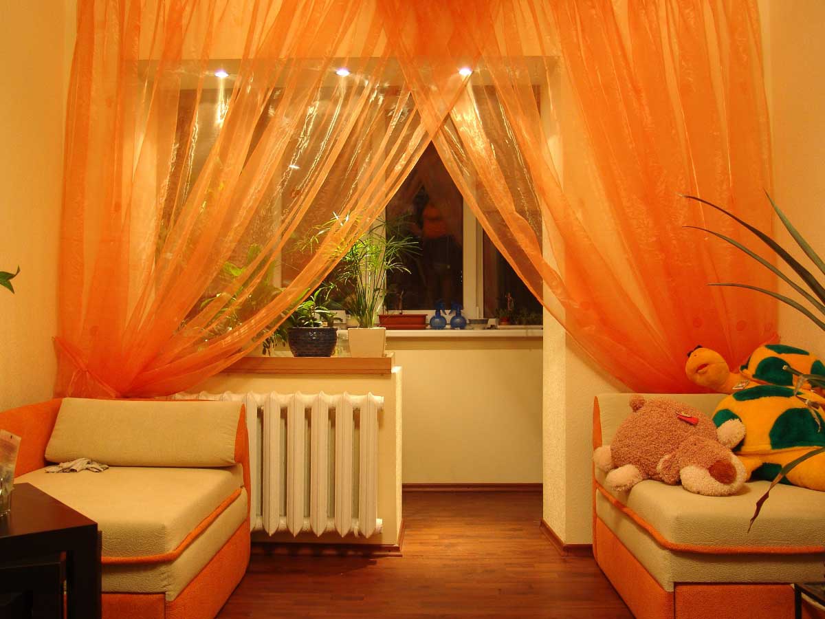 Largo. Permitir aumentar visualmente la altura de las paredes. Encuadra cuidadosamente la ventana abierta. La solución adecuada para habitaciones con puerta de balcón. Le permiten cerrar la vista del balcón y separar la habitación auxiliar del dormitorio. Requiere un cuidado más completo. A menudo se ensucia en la parte inferior, ubicada debajo del nivel del alféizar de la ventana.