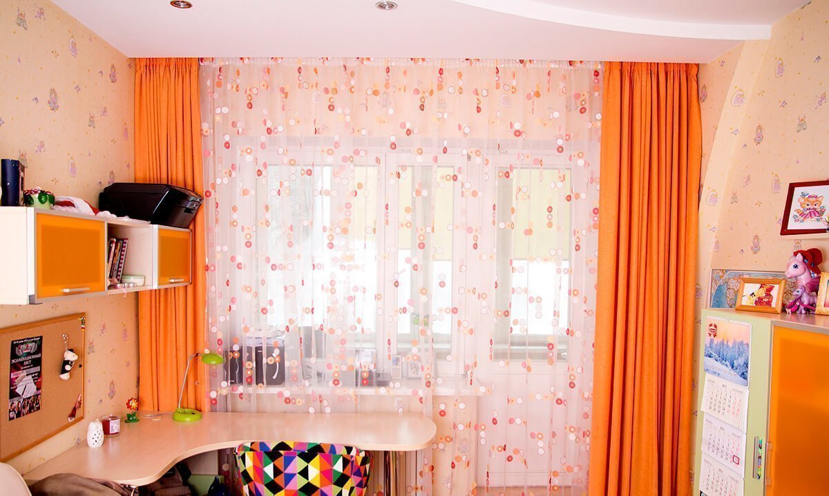 Al elegir textiles para ventanas, se debe prestar atención a su calidad y resistencia. Las telas resistentes al desgaste teñidas con pintura inofensiva son adecuadas para la habitación de un niño. Las mejores soluciones de sala incluyen:
