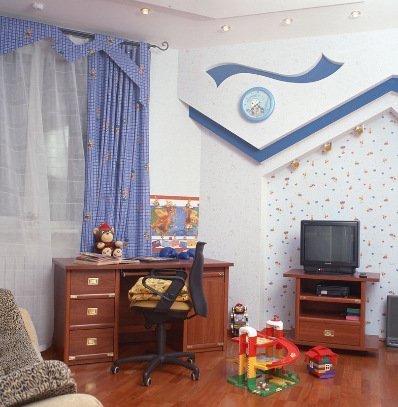 No se recomienda comprar telas costosas para la habitación de un niño menor de 10 años. Un niño puede dibujar accidentalmente, dañar los materiales. Para las habitaciones de niños mayores, puede comprar cualquiera de los altos costos de los productos.