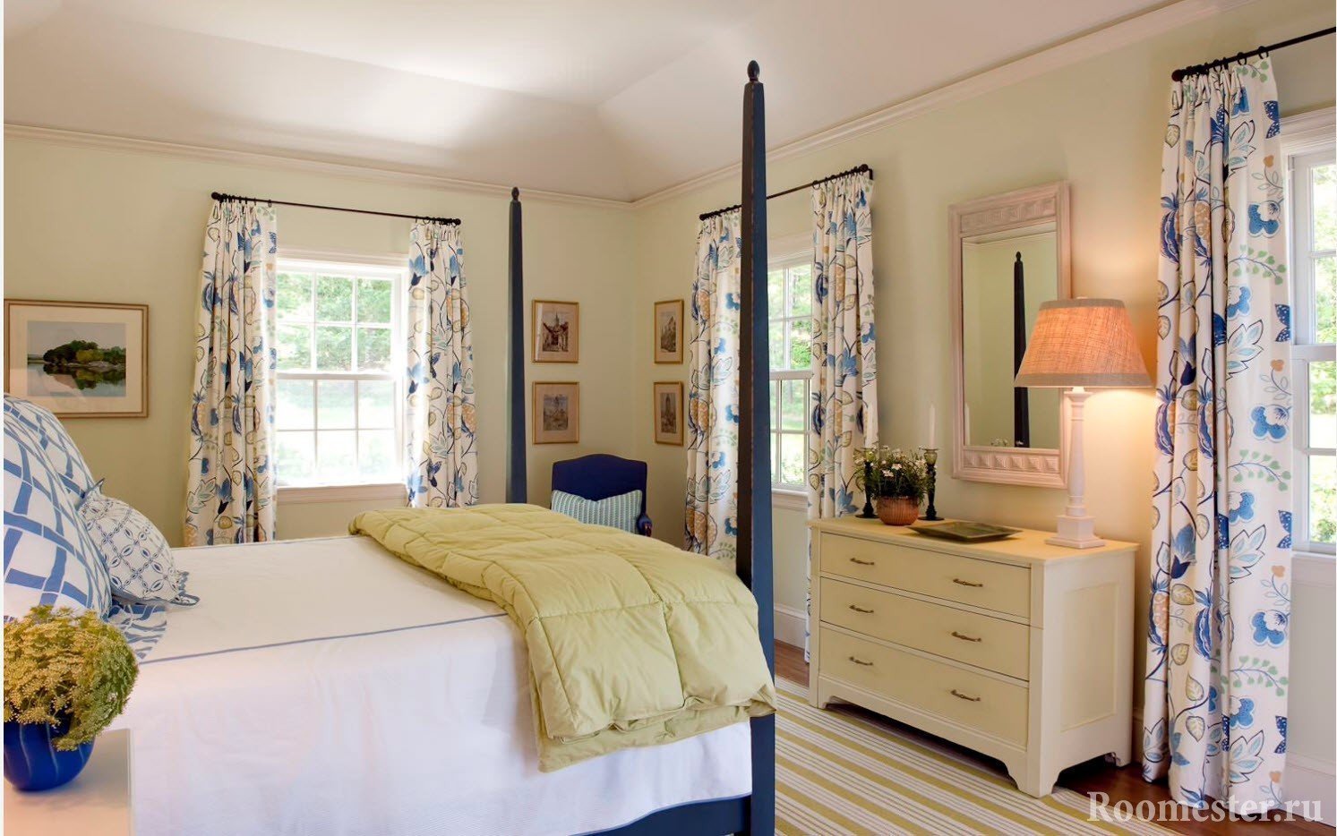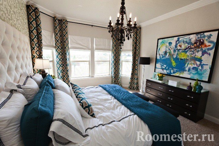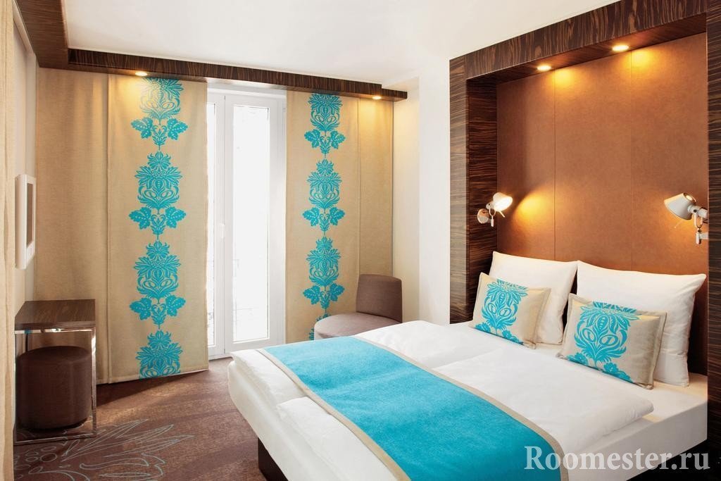 Pero ahora muchos decoradores ofrecen no sucumbir a los estereotipos, porque elegir diferentes textiles hace que sea más fácil lograr una mayor originalidad. Las colecciones confeccionadas con tejidos complementarios lo ayudarán a tomar la decisión correcta, manteniéndose en los marcos de color y estilo correctos. El color de fondo, que se convierte en el color del adorno, patrón para otro elemento textil de la habitación, por ejemplo, las colchas, ayudará a lograr la originalidad de la habitación.