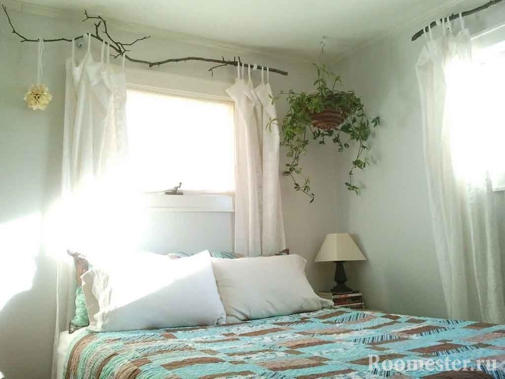 Esta recepción agregará lujo y privacidad a la habitación, pero en una habitación estándar vale la pena mostrar moderación en la asignación, para colocar la cornisa lo más alta posible. Tal concepto de diseño requiere un manejo cuidadoso, cuidado adicional, especialmente en presencia de mascotas.