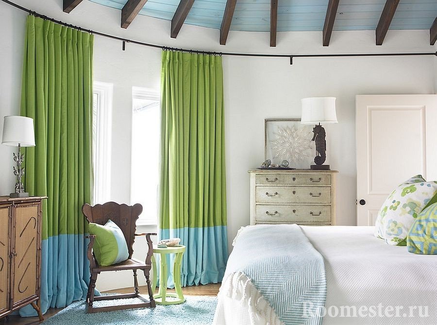Es fácil mantener una cierta correspondencia con el estilo de la habitación con la forma y el tejido de las cortinas: