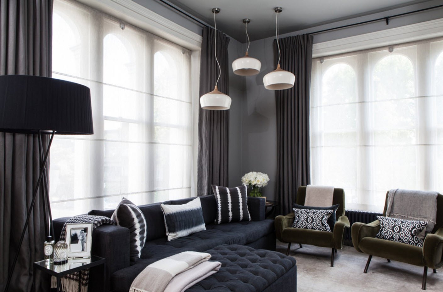 Translúcido También sirven principalmente para difundir la luz natural, hacerla menos brillante. Son más densos en comparación con los modelos transparentes. Colorean el espacio en su color.