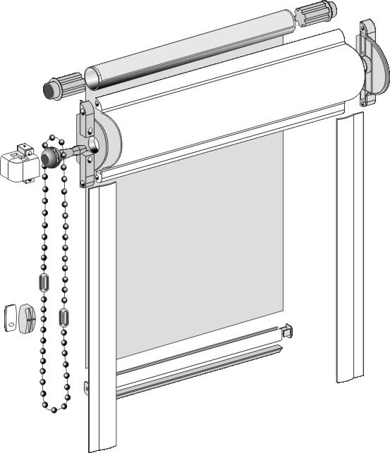 Cadenas La forma estándar de controlar el eje. El enrollado y el desenrollado dependen de qué lado se tire de la cadena equipada con el limitador.
