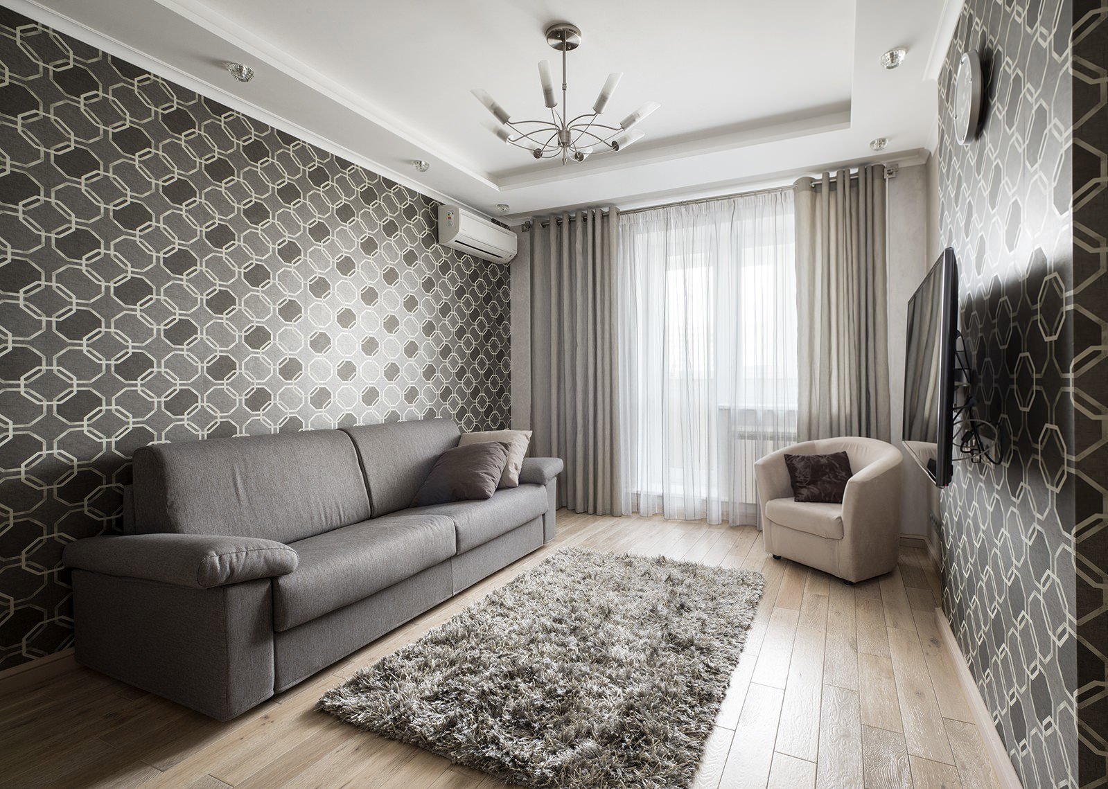 En el caso de la sala de estar, las cortinas grises armonizarán perfectamente con papel tapiz oscuro o claro del mismo color. Sirven como un maravilloso telón de fondo para objetos más brillantes, objetos y diversos accesorios. Sin embargo, es importante conocer algunos de los matices que deben tenerse en cuenta al elegir un material de tela decorativo. La regla clave es que las cortinas grises deben ser un par de tonos más claras que el color principal de los muebles y las paredes. A través de un tono plateado, puede lograr el brillo visual y el brillo de cualquier superficie adyacente.