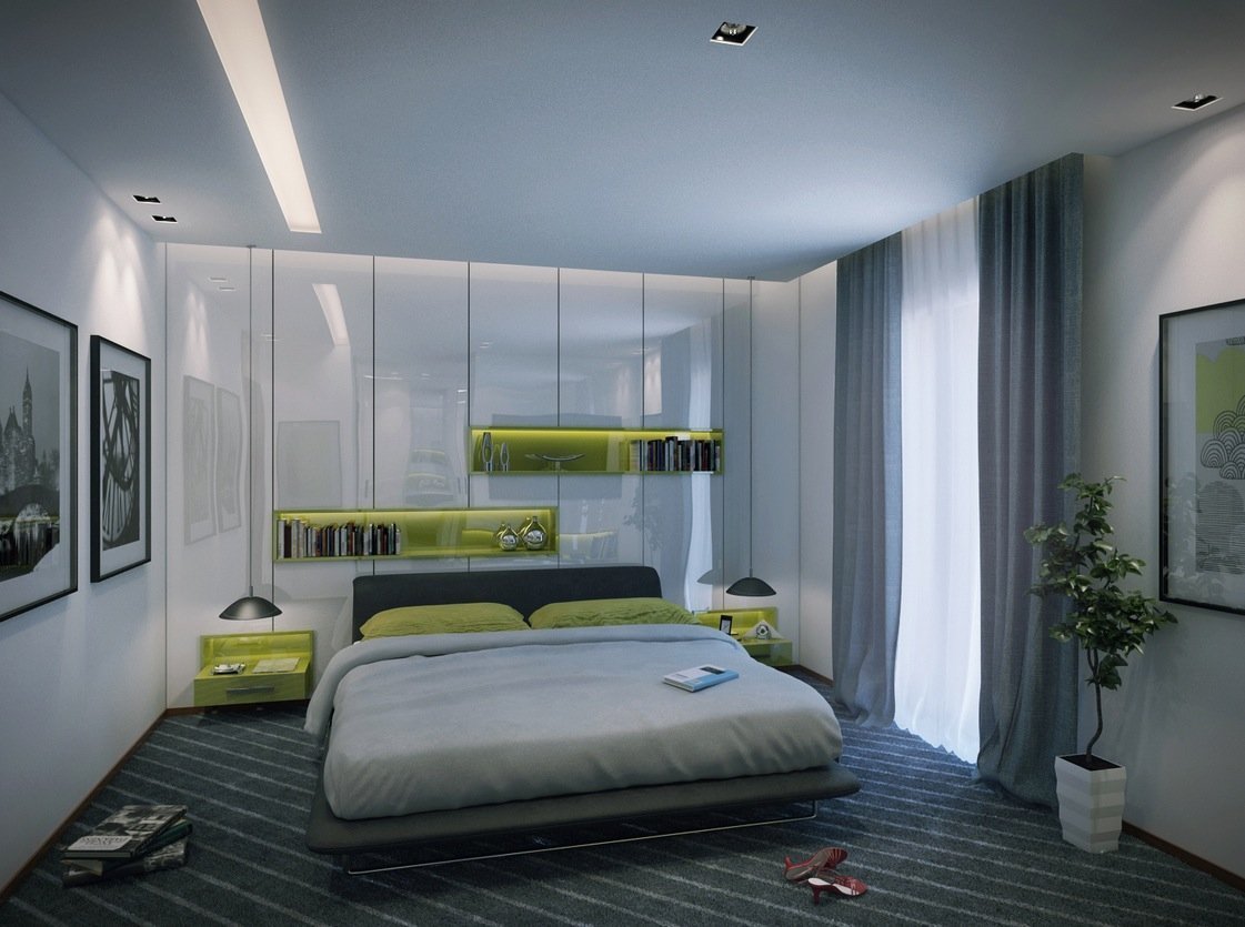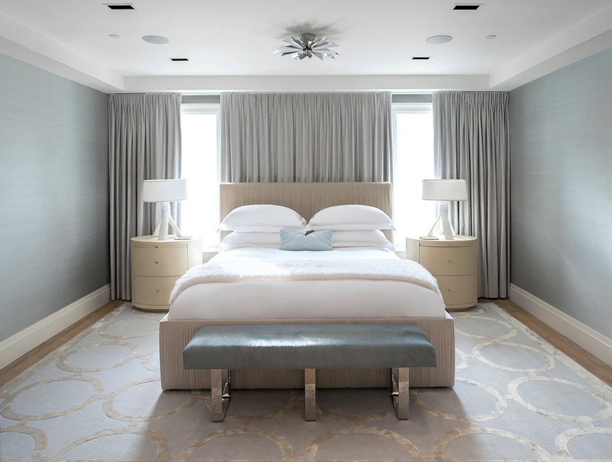 A través de cortinas hechas de un apagón a prueba de luz, puede lograr una oscuridad total en la habitación, que será especialmente relevante para esas personasque pueden despertarse incluso de un rayo de sol. Si el sol no es un obstáculo, puede elegir un velo gris que se verá genial en casi cualquier habitación. Aquellos que no son partidarios de la monotonía en el diseño pueden diluir con seguridad la paleta con un par de colores complementarios.
