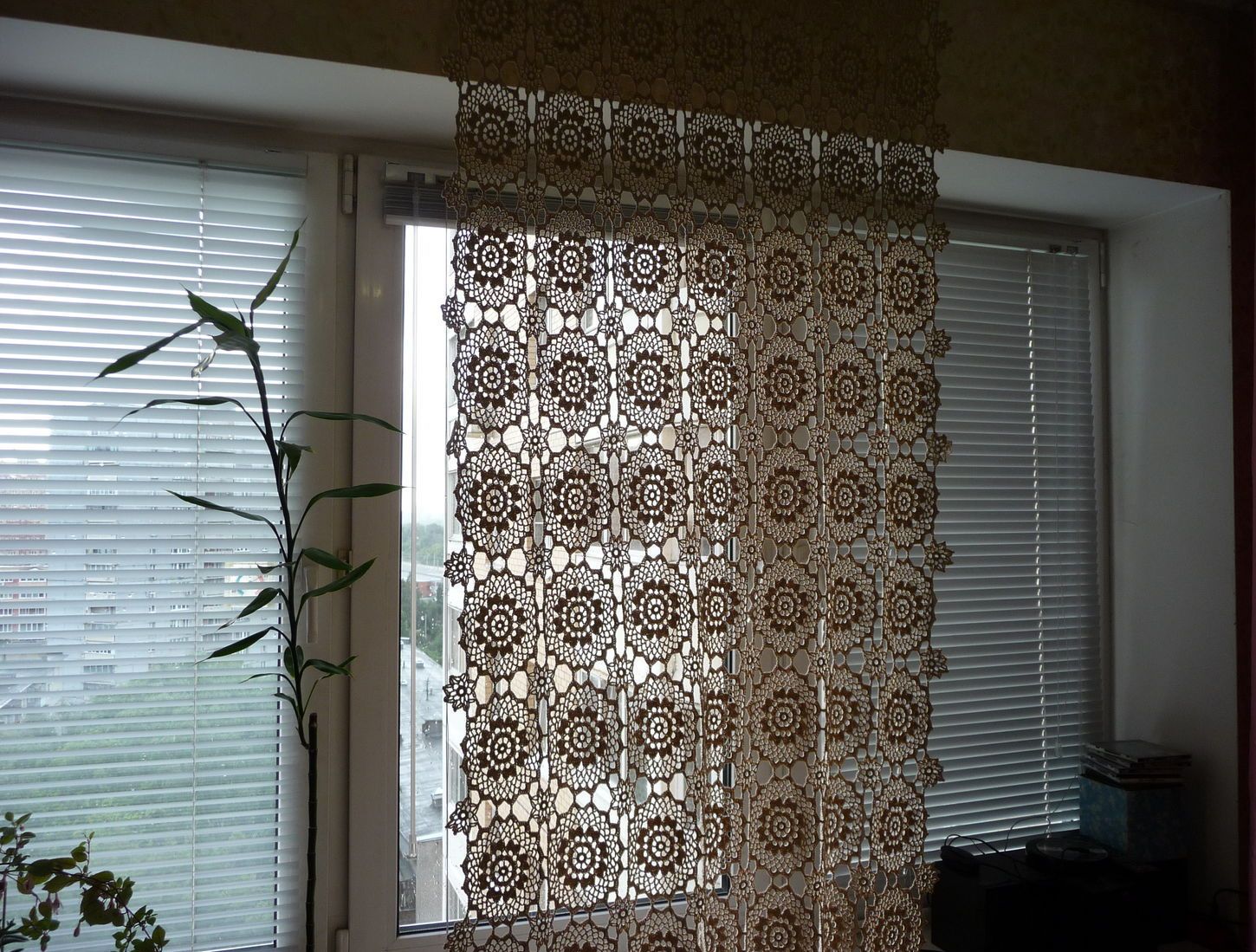 Una cortina hecha a medida o hecha a medida es una verdadera obra de arte. Además, una de las tendencias modernas son las cosas originales hechas a mano en un estilo rústico. Un lambrequin corto, una cortina de café ordenada o una tela de encaje de ganchillo son las soluciones para una cocina con balcón. En una habitación espaciosa, los productos volumétricos de ganchillo se ven bien. Aquí puedes experimentar con la textura de los hilos y una combinación de colores.