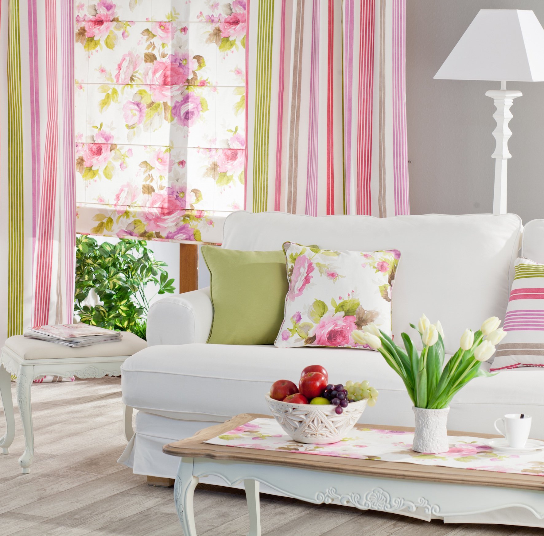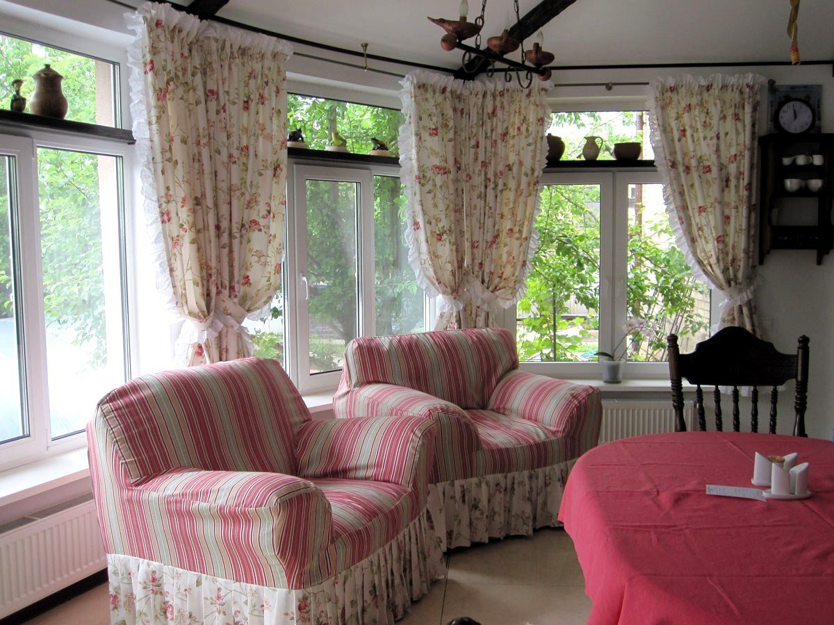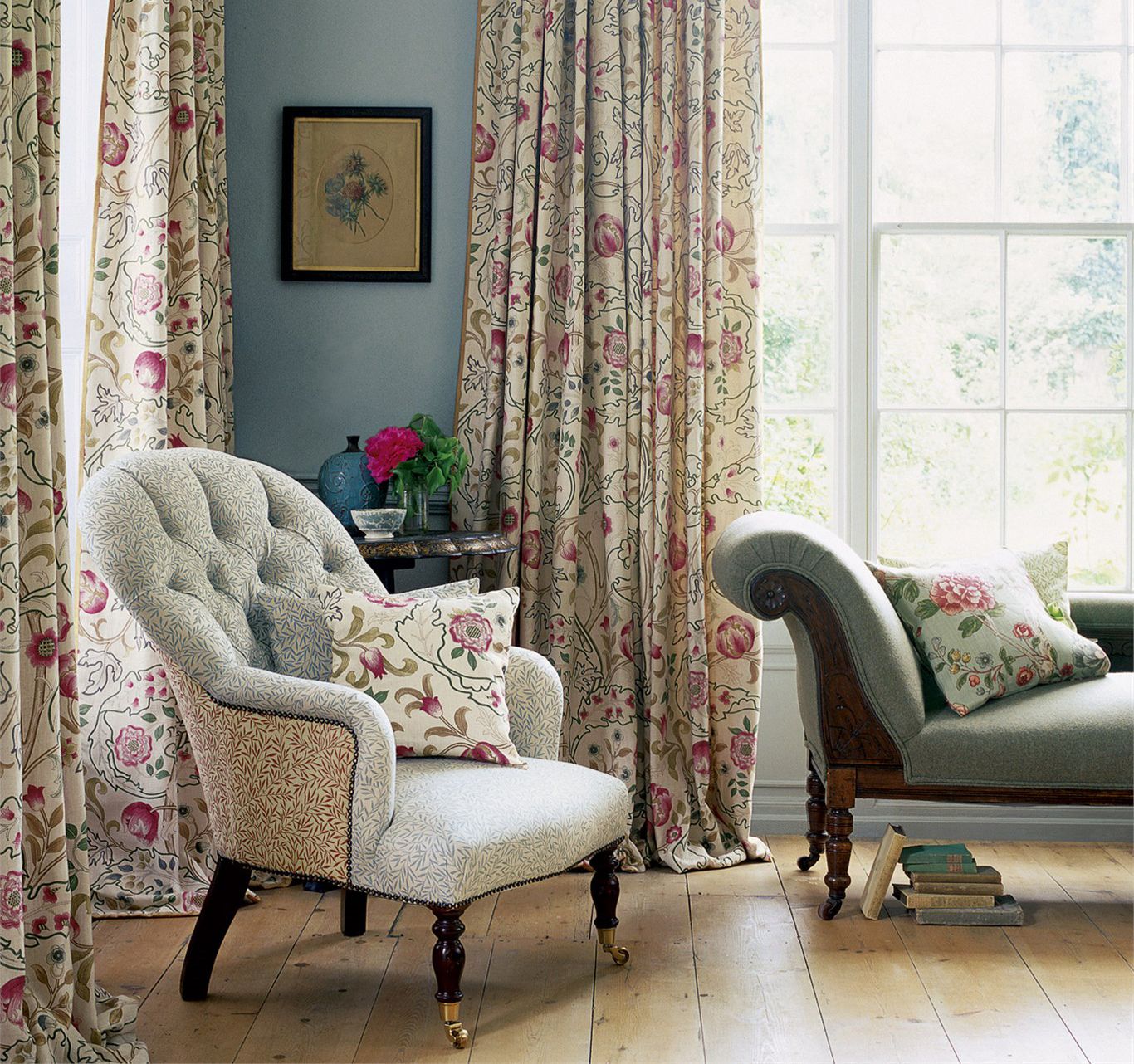 Las cortinas con adornos florales se adaptan a casi todos los estilos, excepto el techno y otros modernos, donde un estampado delicado se verá fuera de lugar. Se ven muy bien en el diseño de los siguientes estilos: