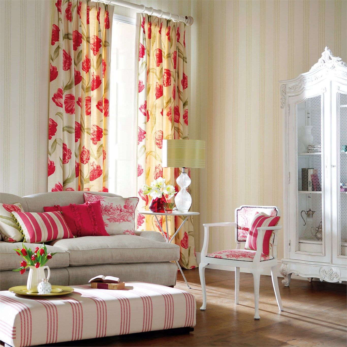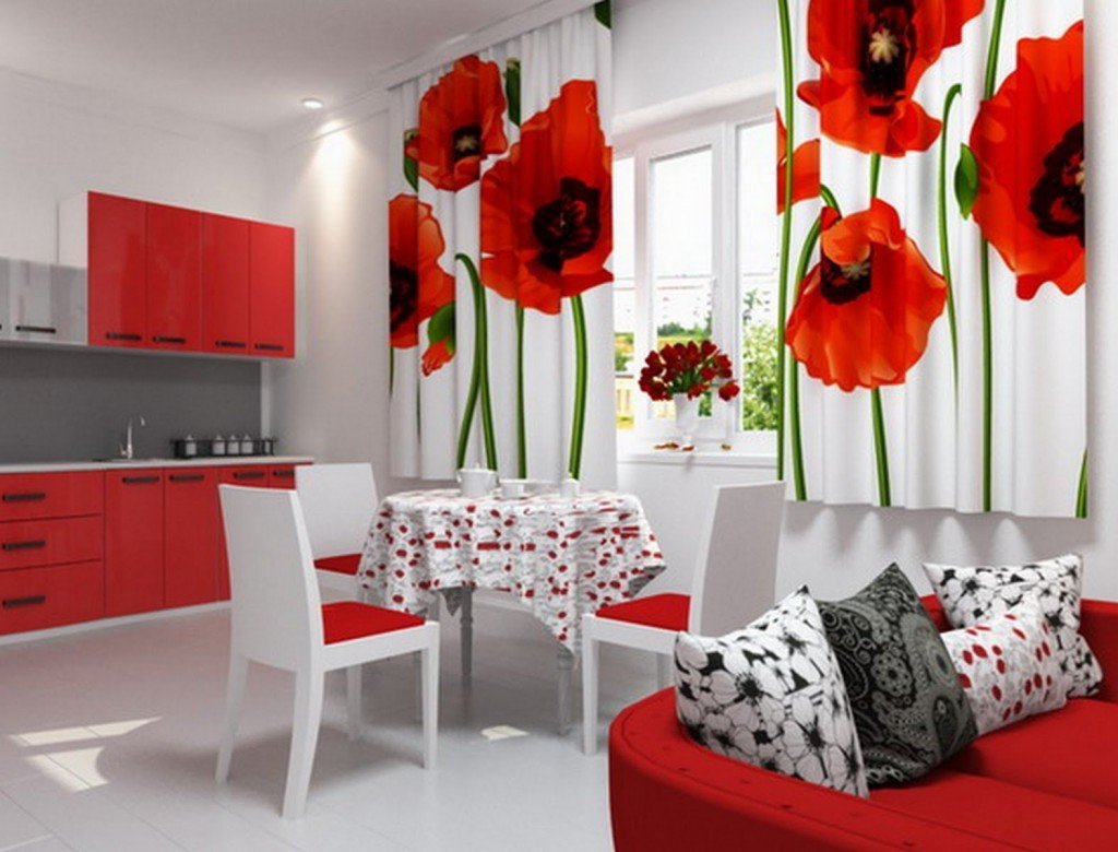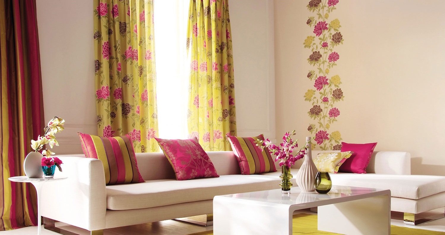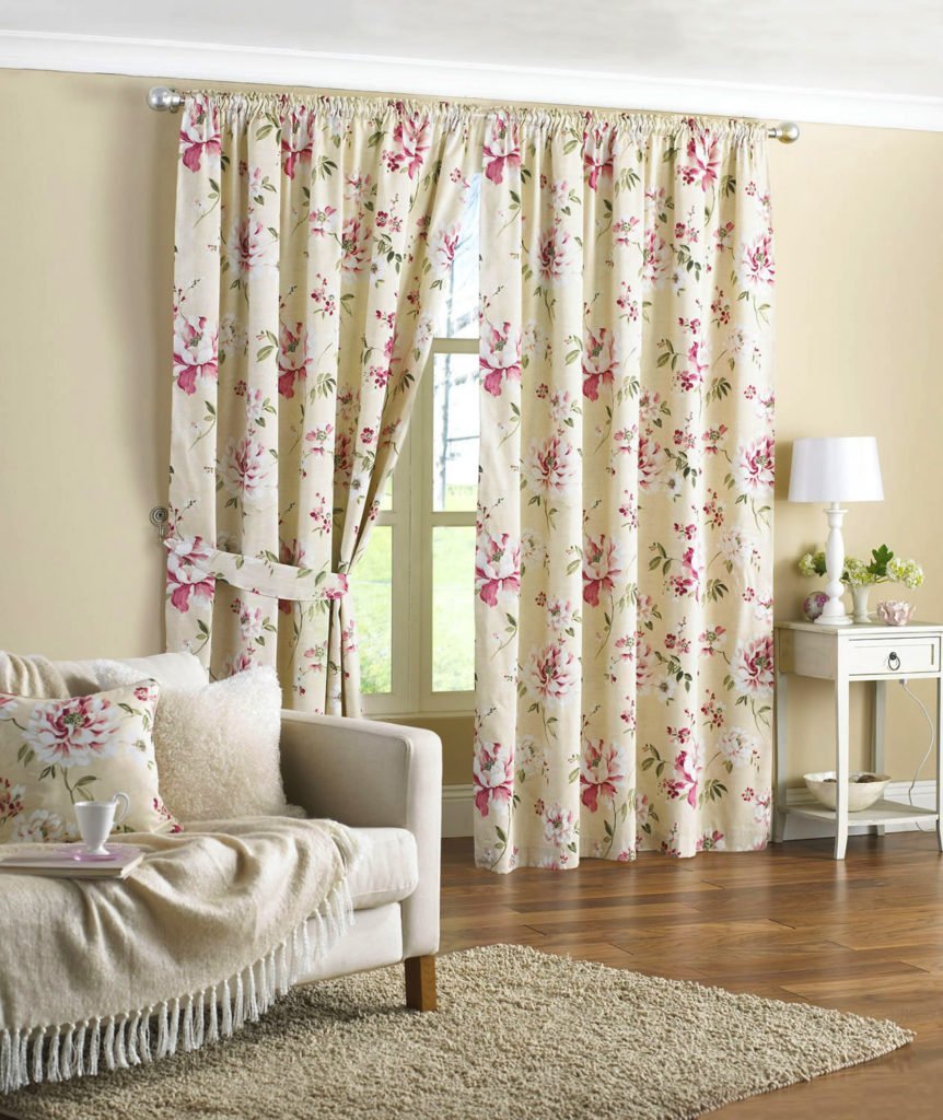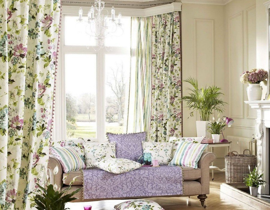 Adorno floral: como recordatorio de la vida silvestre, la frescura de las flores silvestres, los macizos de flores fragantes, el claro del bosque, traerá notas de naturalidad, originalidad, encanto inimitable a cualquier interior, cualquier estilo. A veces, las flores en las cortinas de las ventanas son creaciones de comodidad y, a veces, un ambiente romántico. La combinación correcta de cortinas con muebles y papel tapiz transformará la habitación, enfatizará todas sus ventajas, indicará efectivamente la presencia de techos altos. También ayudará a ocultar algunas de las deficiencias: para corregir pequeñas dimensiones, agregando volumen debido al pequeño adorno y el color claro, para ocultar algunos defectos de paredes, aberturas de ventanas, defectos de arquitectura general.