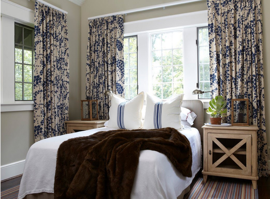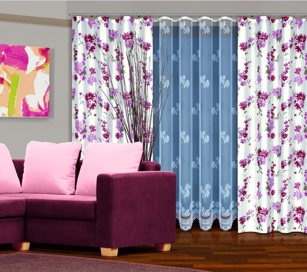 Las cortinas con adornos naturales no se pueden combinar con pliegues exuberantes y otros elementos pesados que distraen. Esto sobresaturó el interior. La impresión colorida en sí misma atrae la atención, por lo tanto, como elemento central, debe estar rodeada de una atmósfera modesta. Las cortinas se combinan con el color de las paredes. Si el papel tapiz contiene colores brillantes y atractivos, las cortinas de las ventanas deben estar hechas de chocolate neutro, arena u color oliva, dependiendo de la escala de tonos general. Las margaritas, rosas, tulipanes en la cortina deben coincidir con el color del fondo de pantalla.Las flores se ven hermosas junto a los fondos de pantalla a rayas o en jaula. Es importante que la intrincada impresión vaya junto con un patrón de papel tapiz simple, incluso primitivo. Se debe tener cuidado en los tonos contrastantes, así como en la combinación de colores y motivos animales en el interior. A menudo, las cortinas se seleccionan teniendo en cuenta el color del interior. Una cortina blanca perfecta se verá estéticamente agradable, decorada con delicadas flores azules junto con muebles hechos en un tono idéntico.