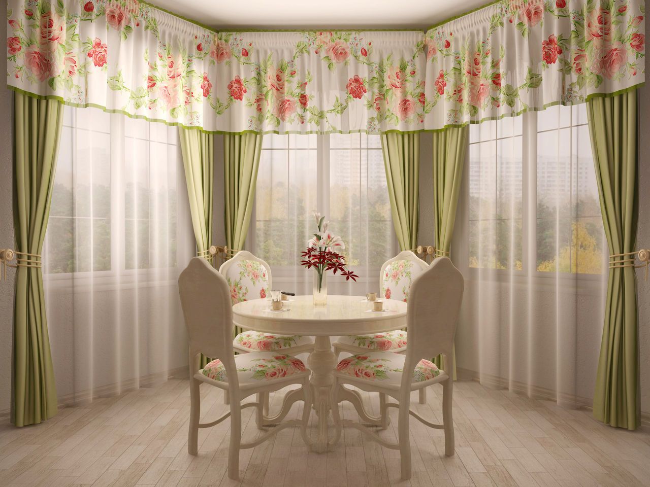 El encanto de la naturaleza provenzal se destaca por materiales naturales, colores delicados y discretos, cortinas elegantes y adornos naturales. Un tul con rosas pequeñas o un chintz de aire se verá bien.