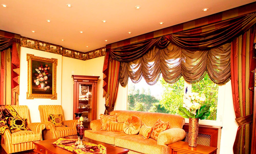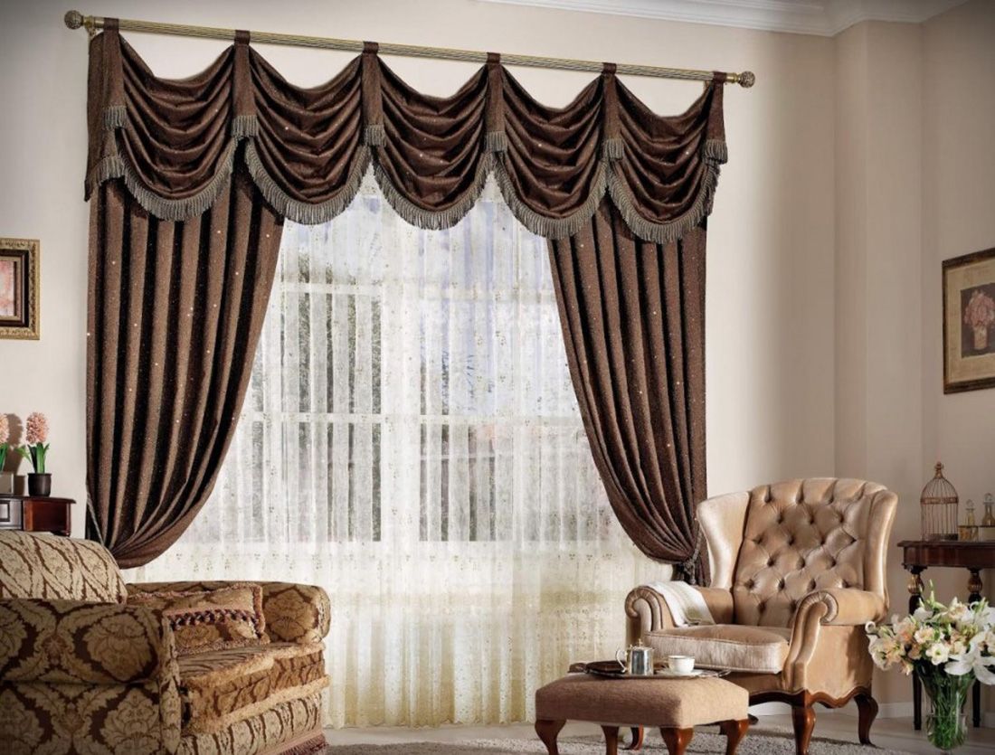 Decora la abertura de la ventana estrictamente de acuerdo con el estilo de toda la habitación. Es mejor estudiar la composición de la foto de antemano, compararla con el tamaño y las características de la habitación. Las cortinas con lambrequin durante mucho tiempo se mantuvieron hermosas y atractivas, al elegir una cortina, se deben considerar las siguientes recomendaciones:
