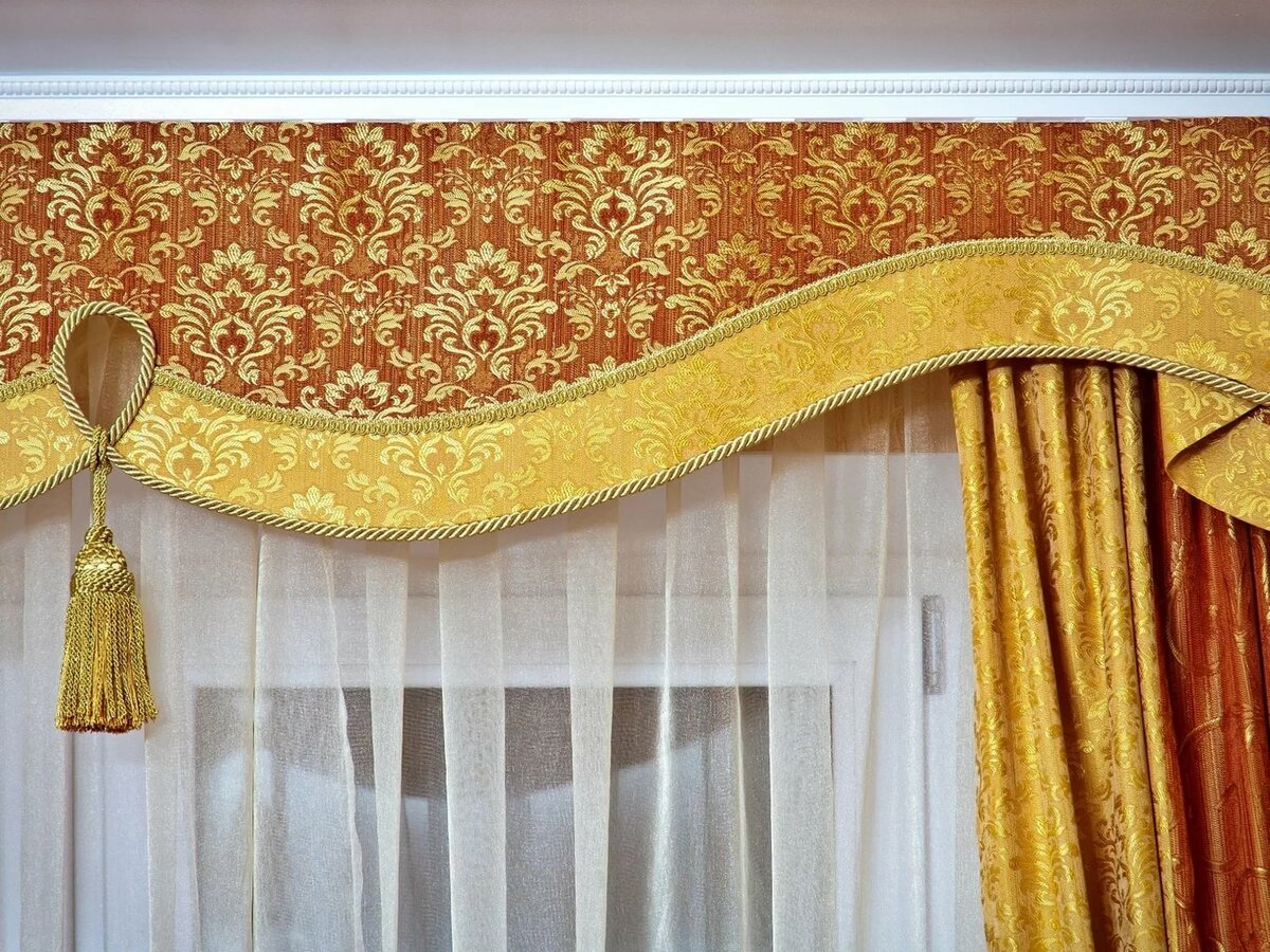 Para coser lambrequines, se permite usar tela con un patrón, si este no es un modelo con adornos de encaje.Para facilitar la fijación a la cornisa, todas las partes de la estructura están equipadas con velcro. Para sustratos suaves y naturales, la limpieza en húmedo está contraindicada.