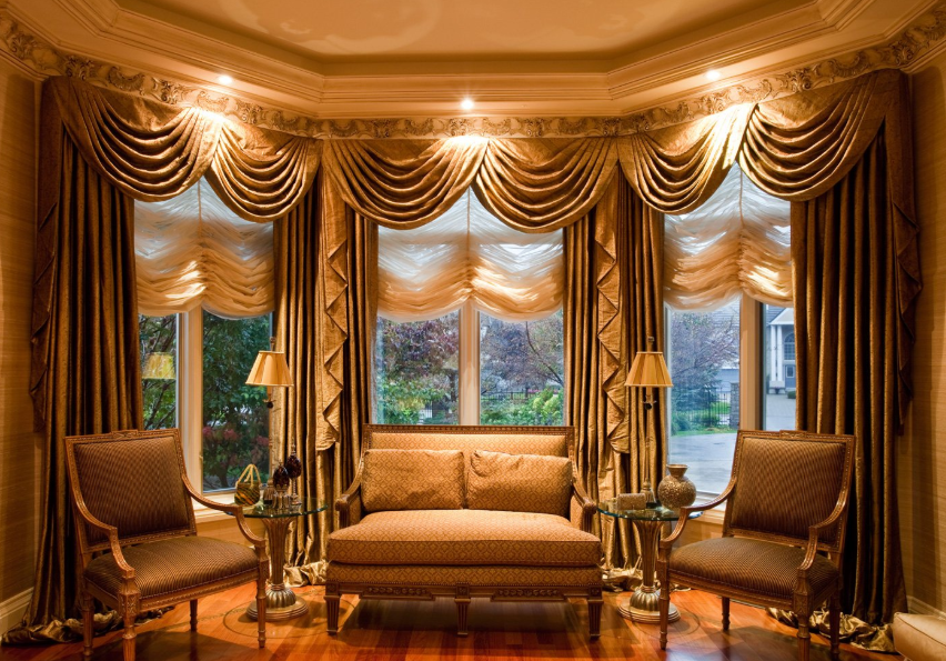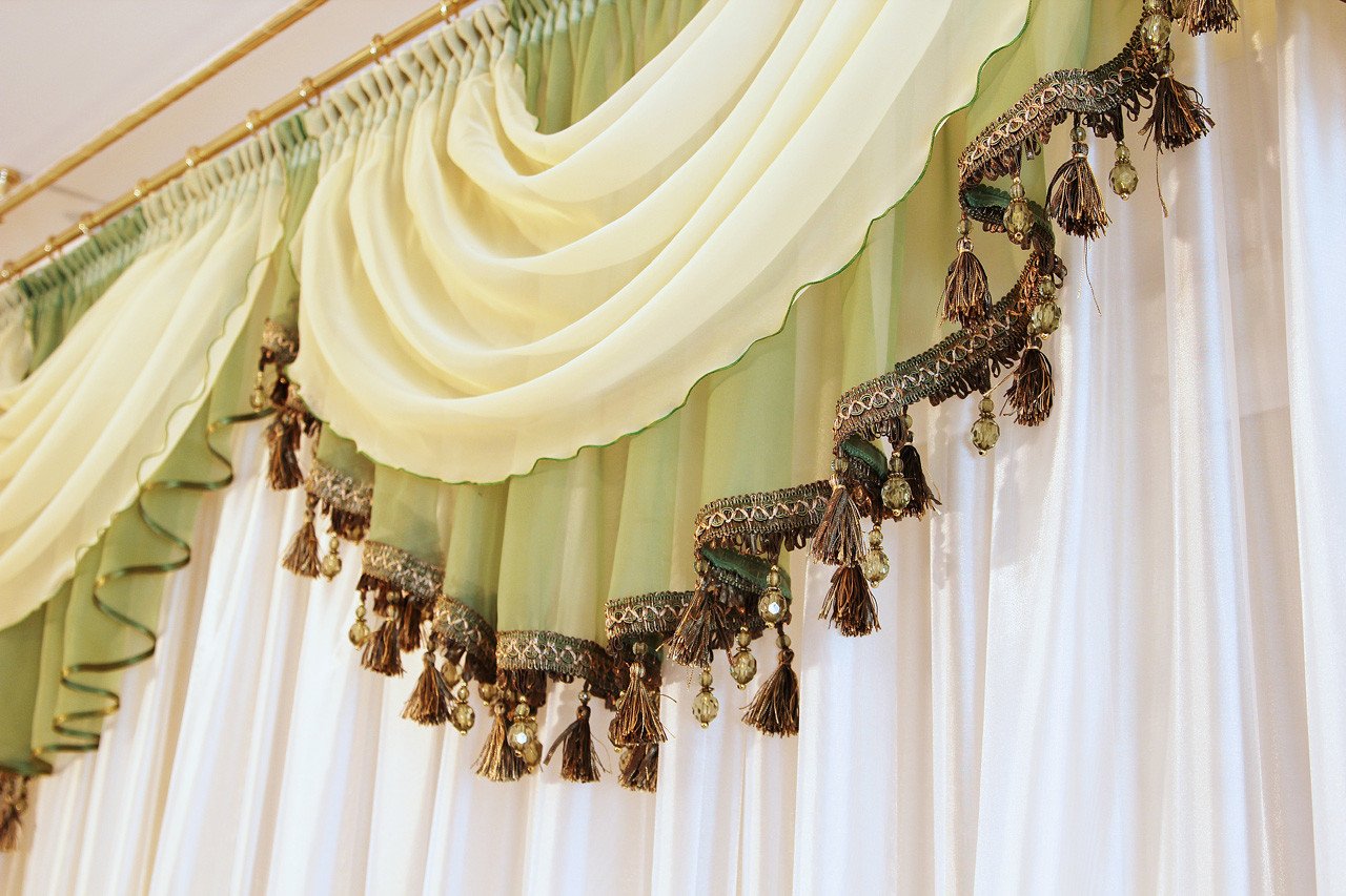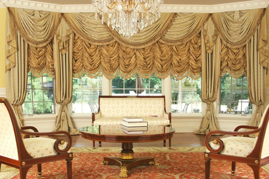 Festones. Los pliegues horizontales anchos son adecuados para lambrequines masivos.