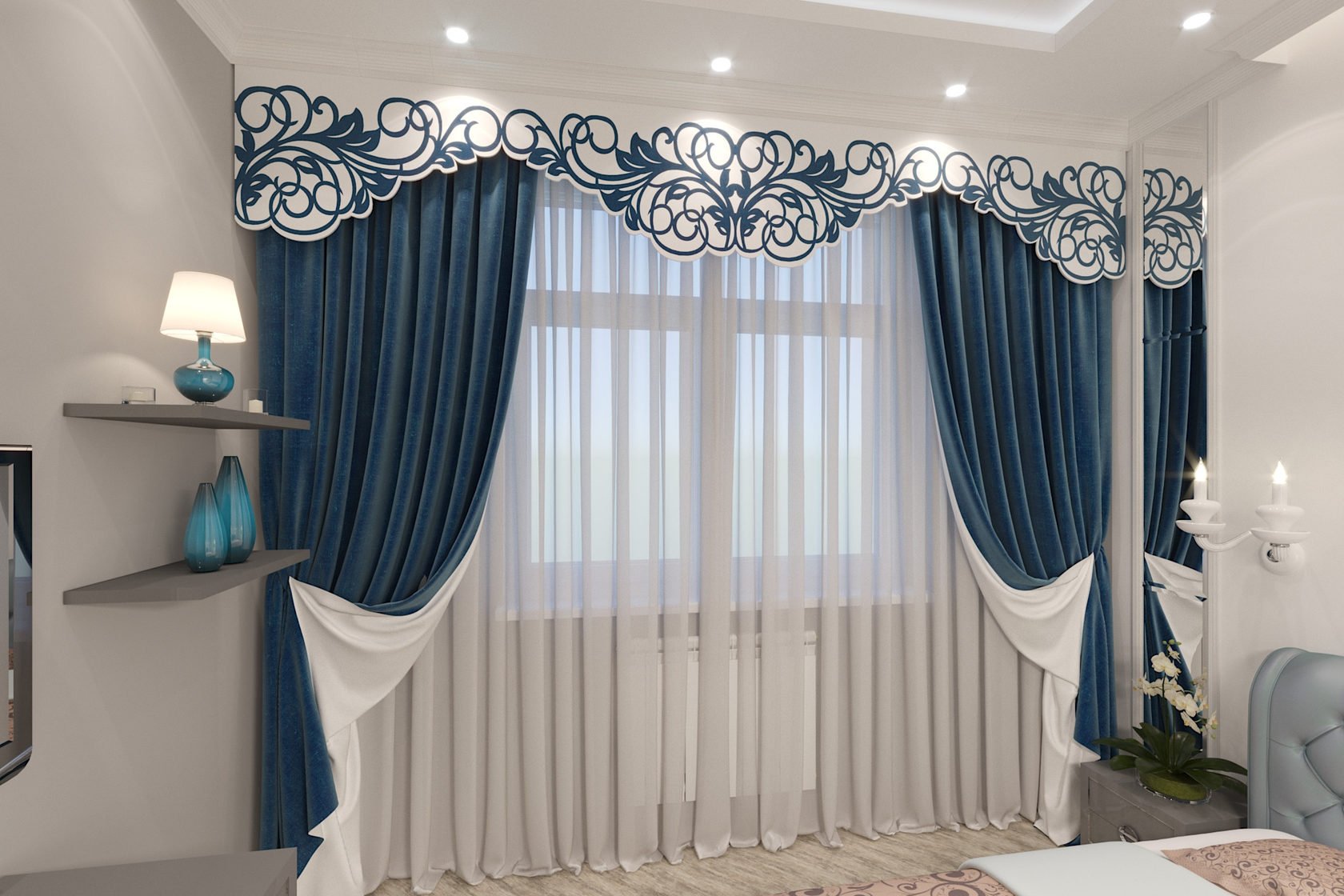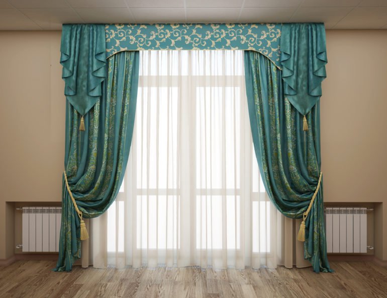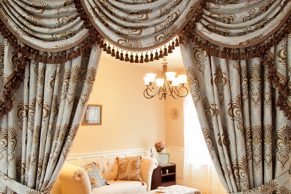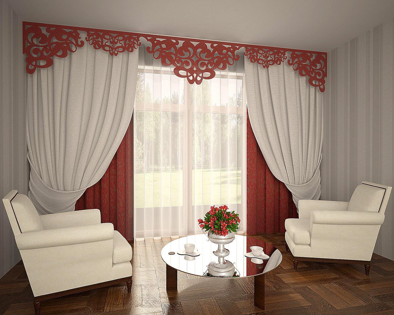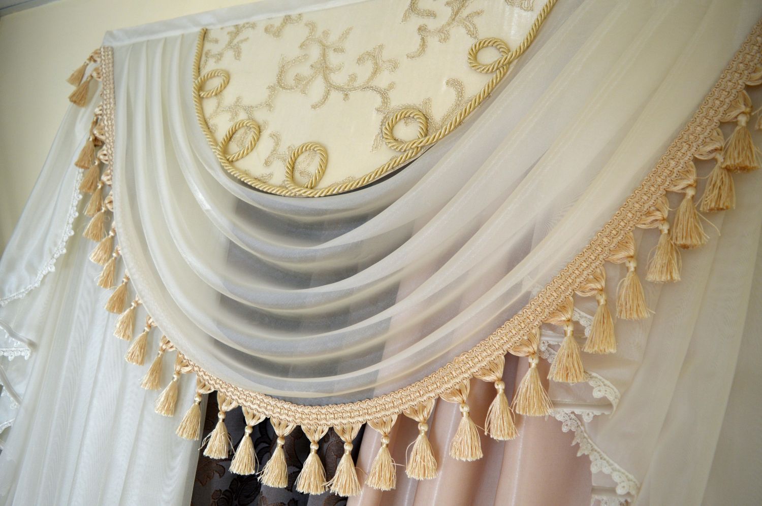 La decoración textil para cortinas puede tener un borde inferior recto o rizado. Bandeau calado también es popular. En la producción, se hace un patrón hermoso usando corte por láser, en casa, usando la técnica de guilloche.