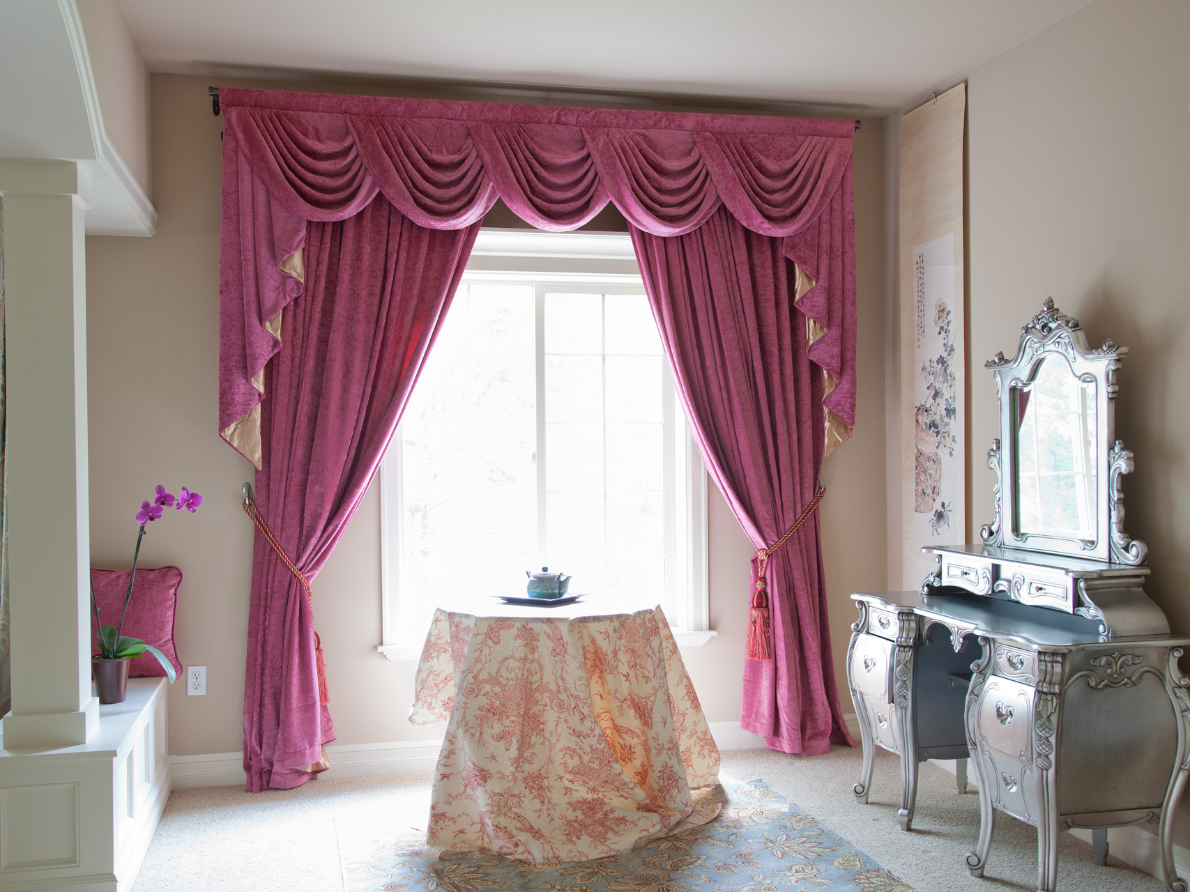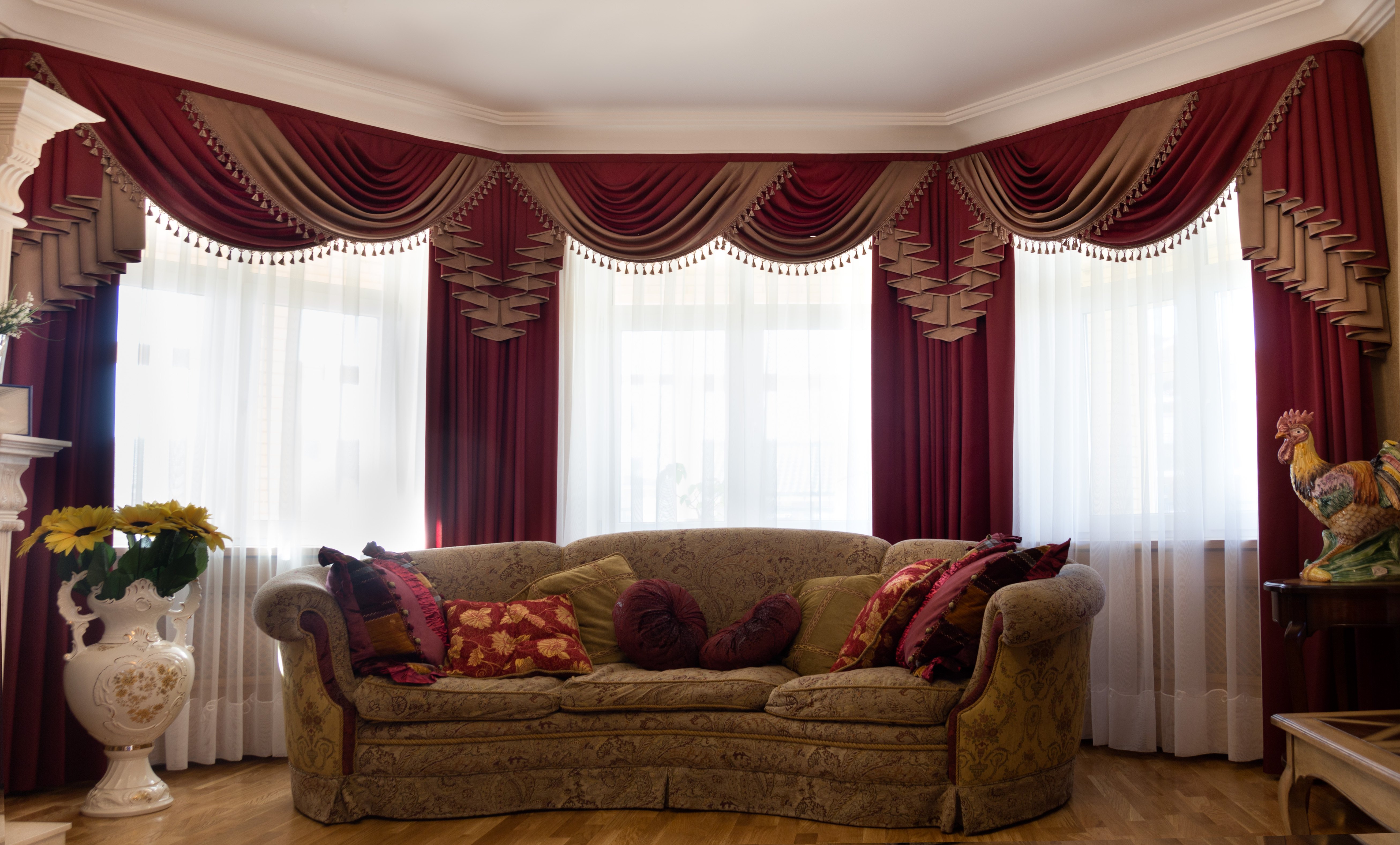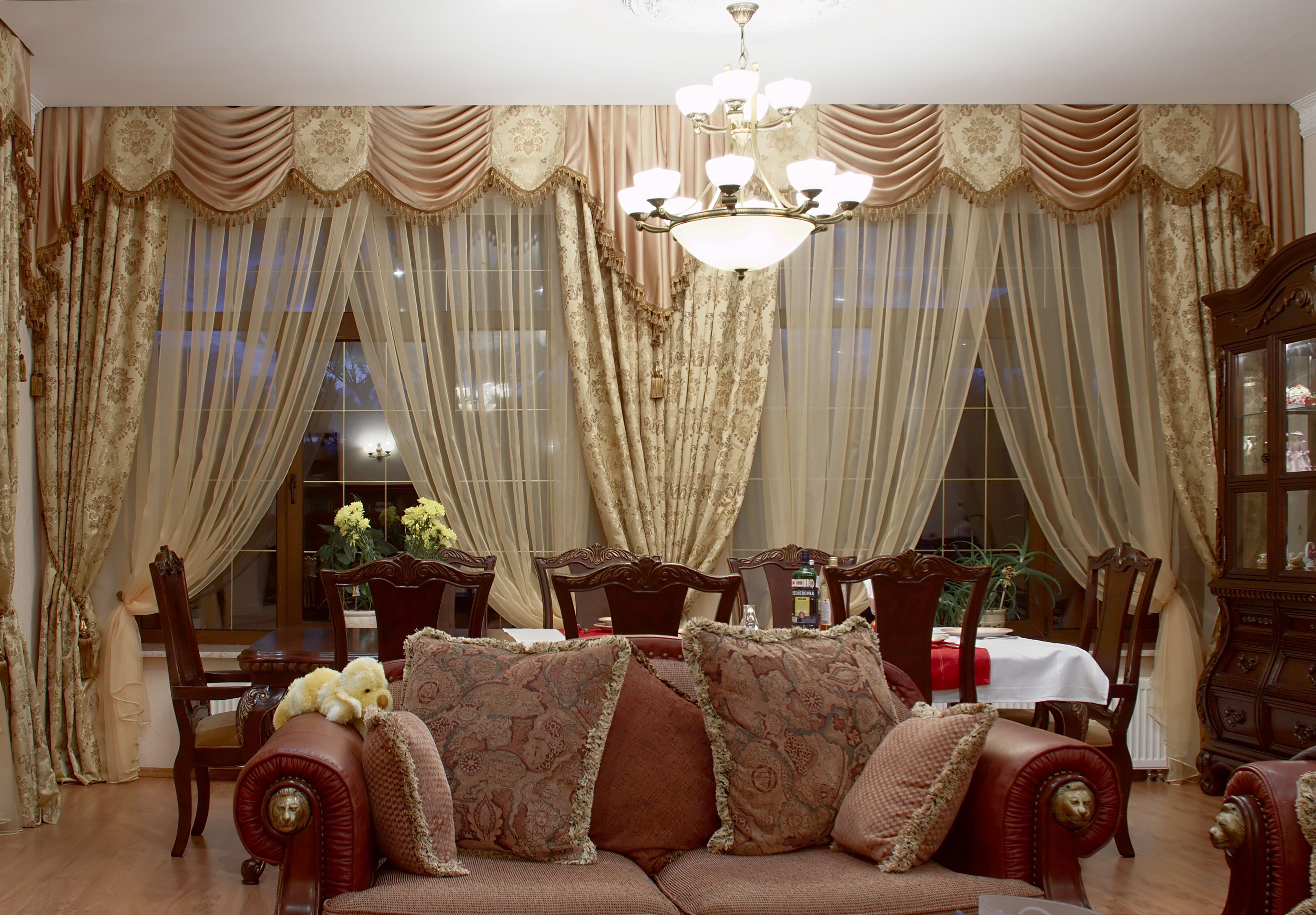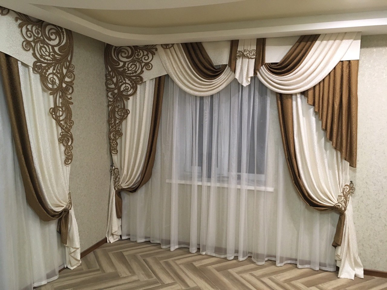 La decoración textil para cortinas puede tener un borde inferior recto o rizado. Bandeau calado también es popular. En la producción, se hace un patrón hermoso usando corte por láser, en casa, usando la técnica de guilloche.