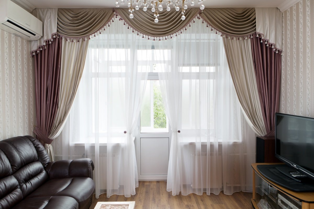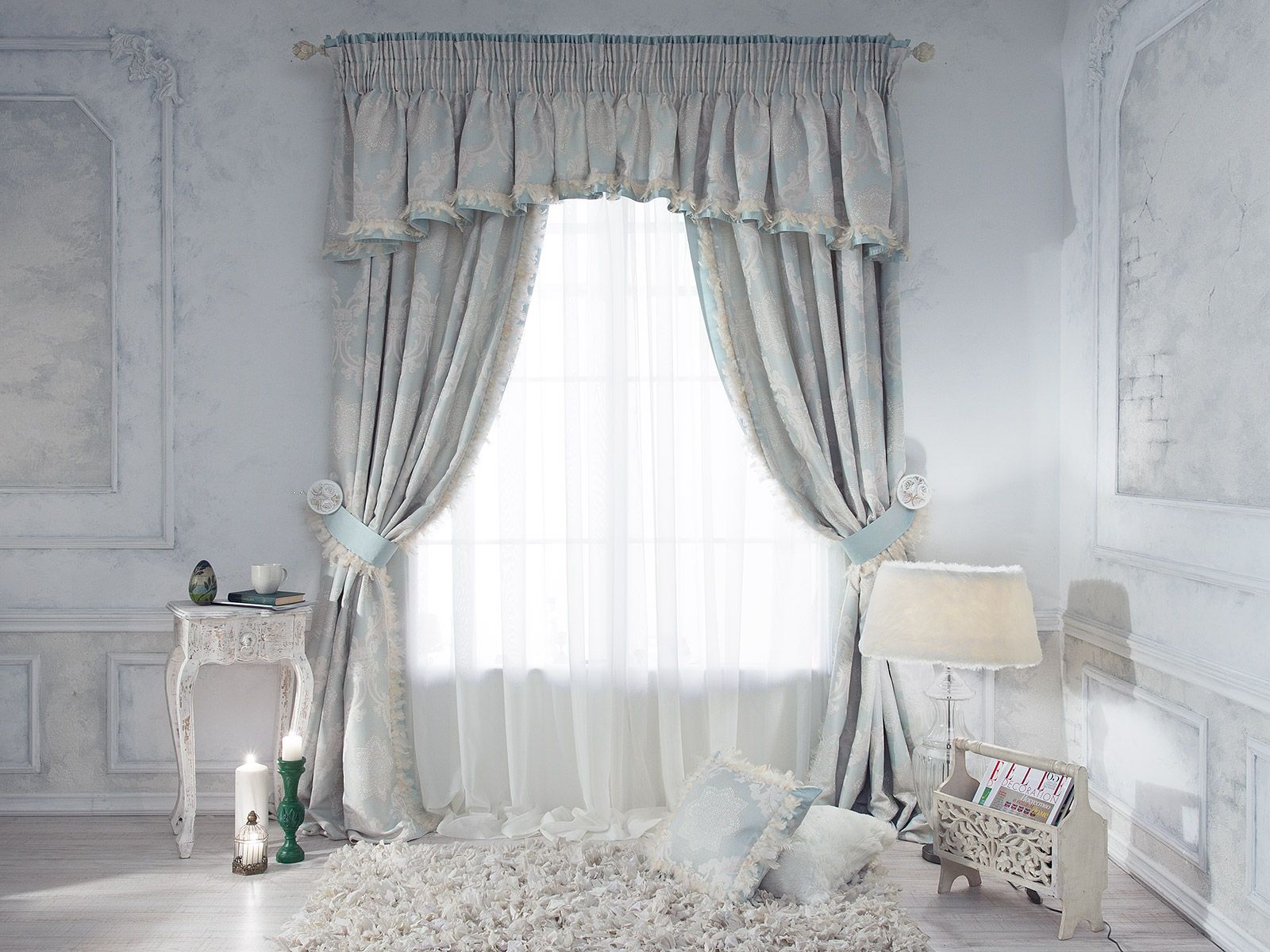 Las estructuras aéreas de una o varias capas son la opción más común para salas de estar y dormitorios. Las cortinas con lambrequines suaves harán una elegante apertura de ventana de cualquier tamaño.Coser un modelo simple requerirá una pieza de tela y una trenza larga. Se pasa a través de los agujeros preparados y se fija un tramo a ambos lados de la cornisa.