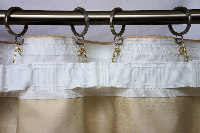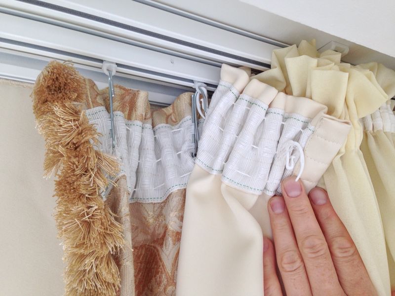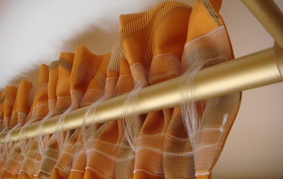 Hacer una decoración en capas es mucho más difícil. Esto requerirá varios tipos de tela, elementos adicionales (volantes, volantes, trenzas, flecos). Los pliegues de la cinta de cortina se colocan de varias maneras. Los tipos más populares son rectos, arqueados, ondulados.