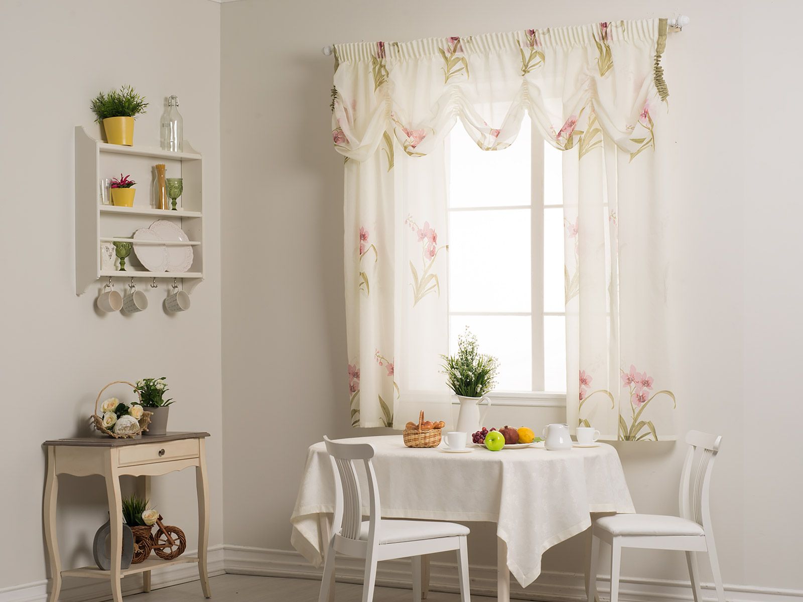 Las telas fáciles de cuidar (lino, viscosa) son más adecuadas para la cocina;