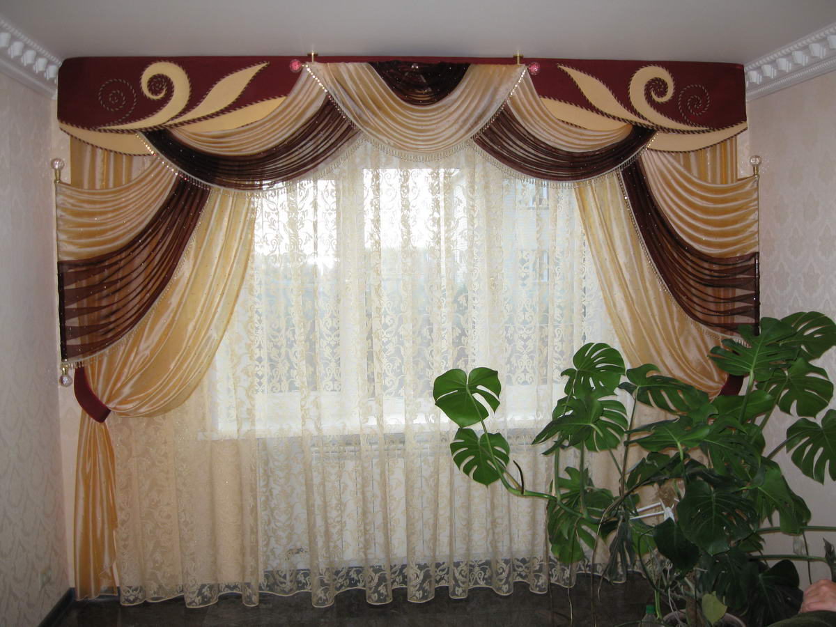 A pesar de las dificultades en la atención y el costo considerable, las cortinas con un lambrequin permanecen de moda.Dificultades en la fabricación, el alto consumo de tela compensa la impresionante apariencia de la composición terminada. Los adornos cruzados de tela se ven muy bien solos o con otras decoraciones.