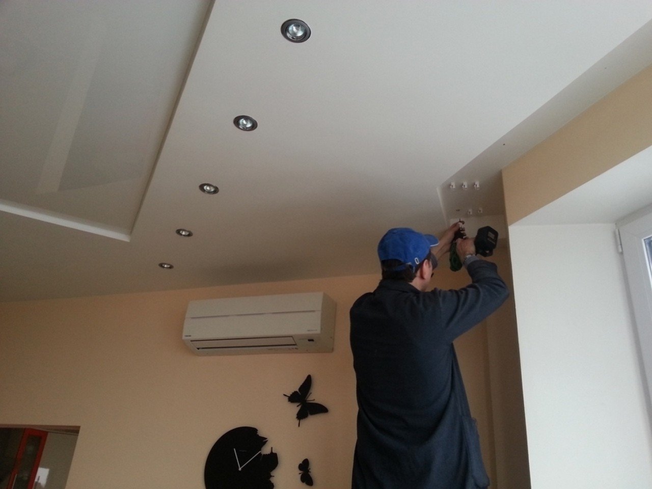 En el nicho del techo, además de la suspensión en sí, es fácil ocultar todos los cables adicionales, algunas otras comunicaciones.