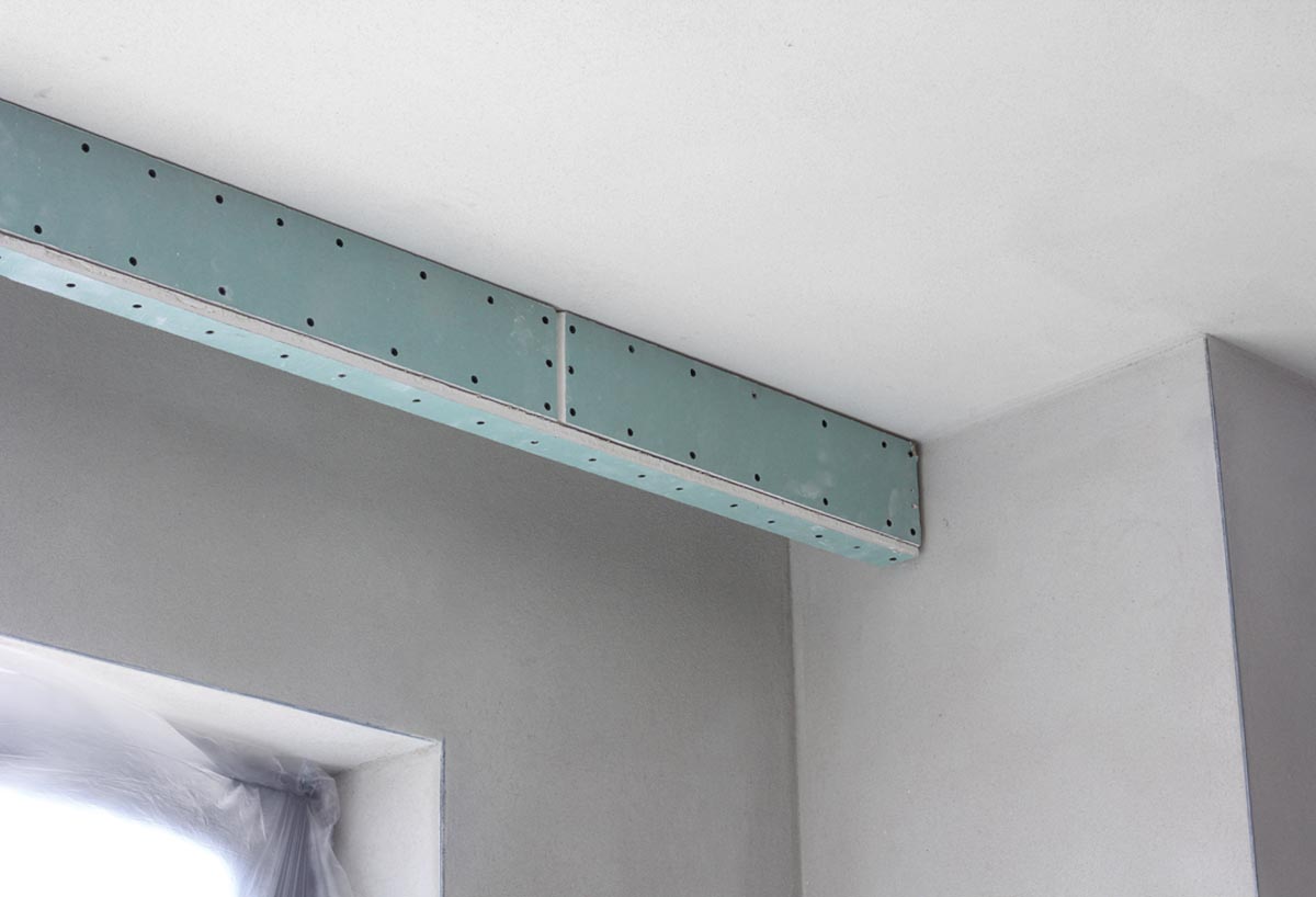 La principal desventaja de los paneles de yeso es su baja resistencia, si la carga cae en un punto, por lo tanto, está permitido colgar solo objetos ligeros directamente sobre la superficie del panel de yeso. La fijación aquí está hecha por pernos Molly especialmente diseñados para estructuras huecas. Si se planea colgar productos más pesados, debajo del panel de yeso, se monta una viga de mortero directamente en el techo, sobre la cual se atornilla la cornisa más tarde.Esto debe hacerse antes de ensamblar la construcción de paneles de yeso.