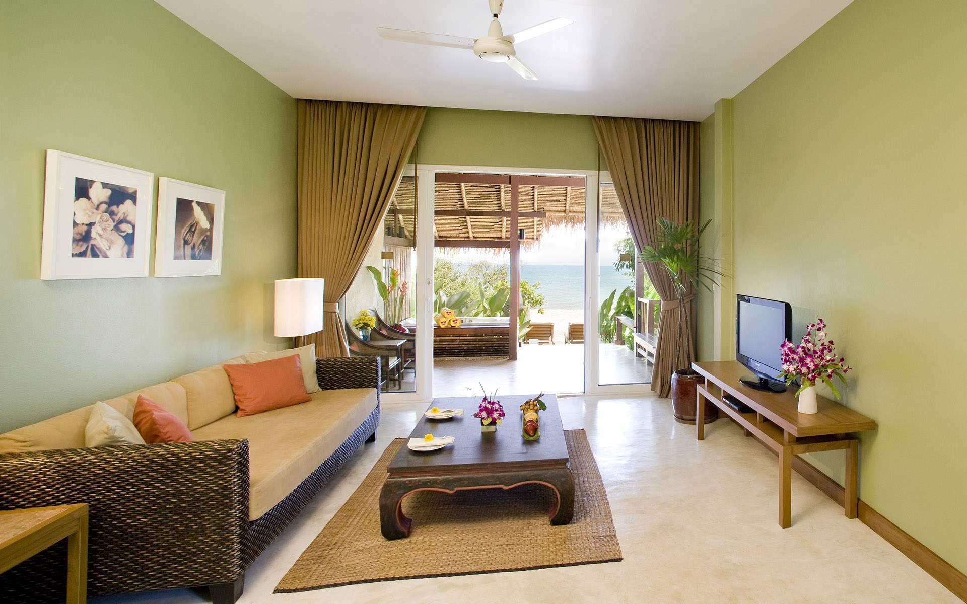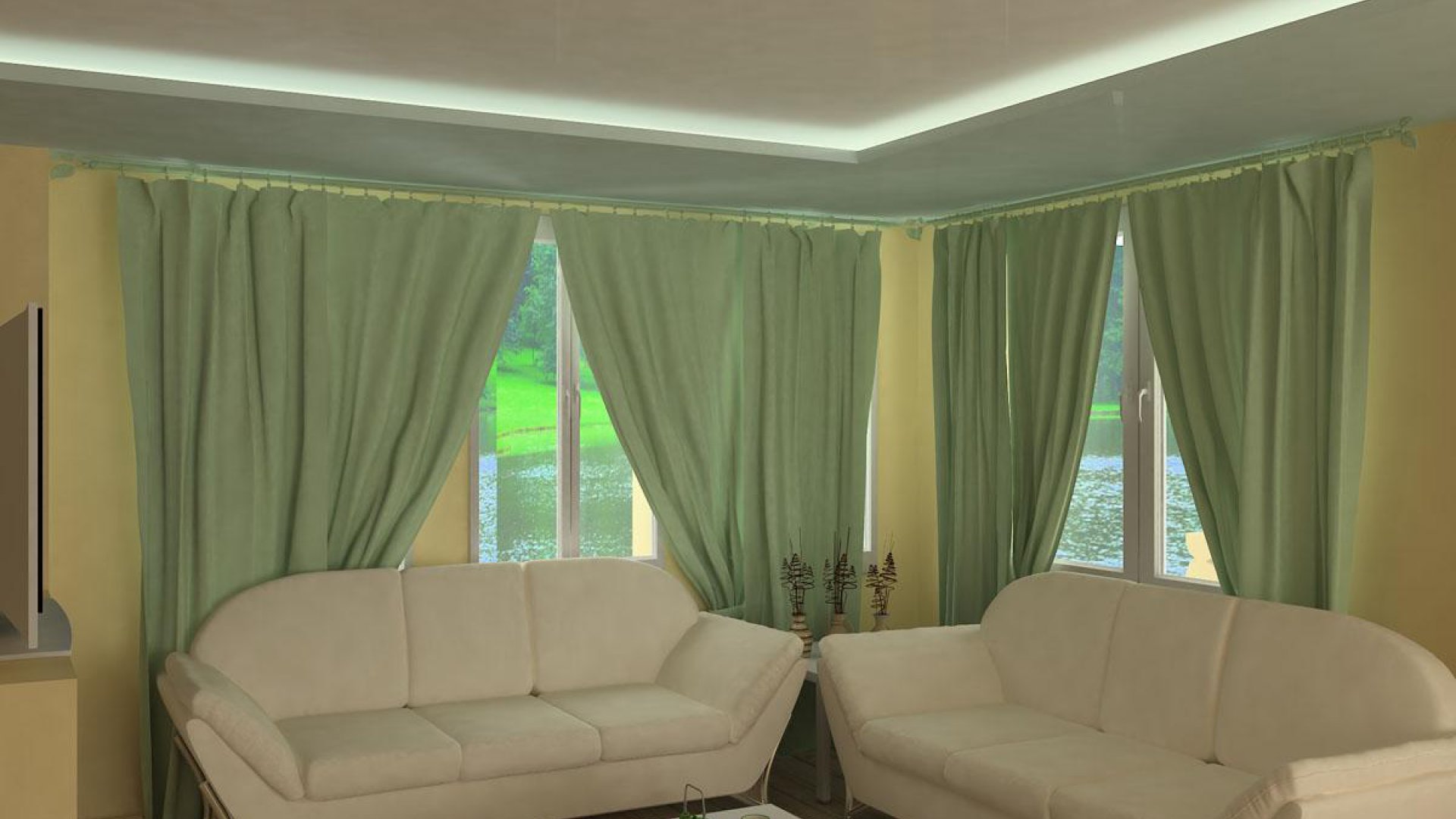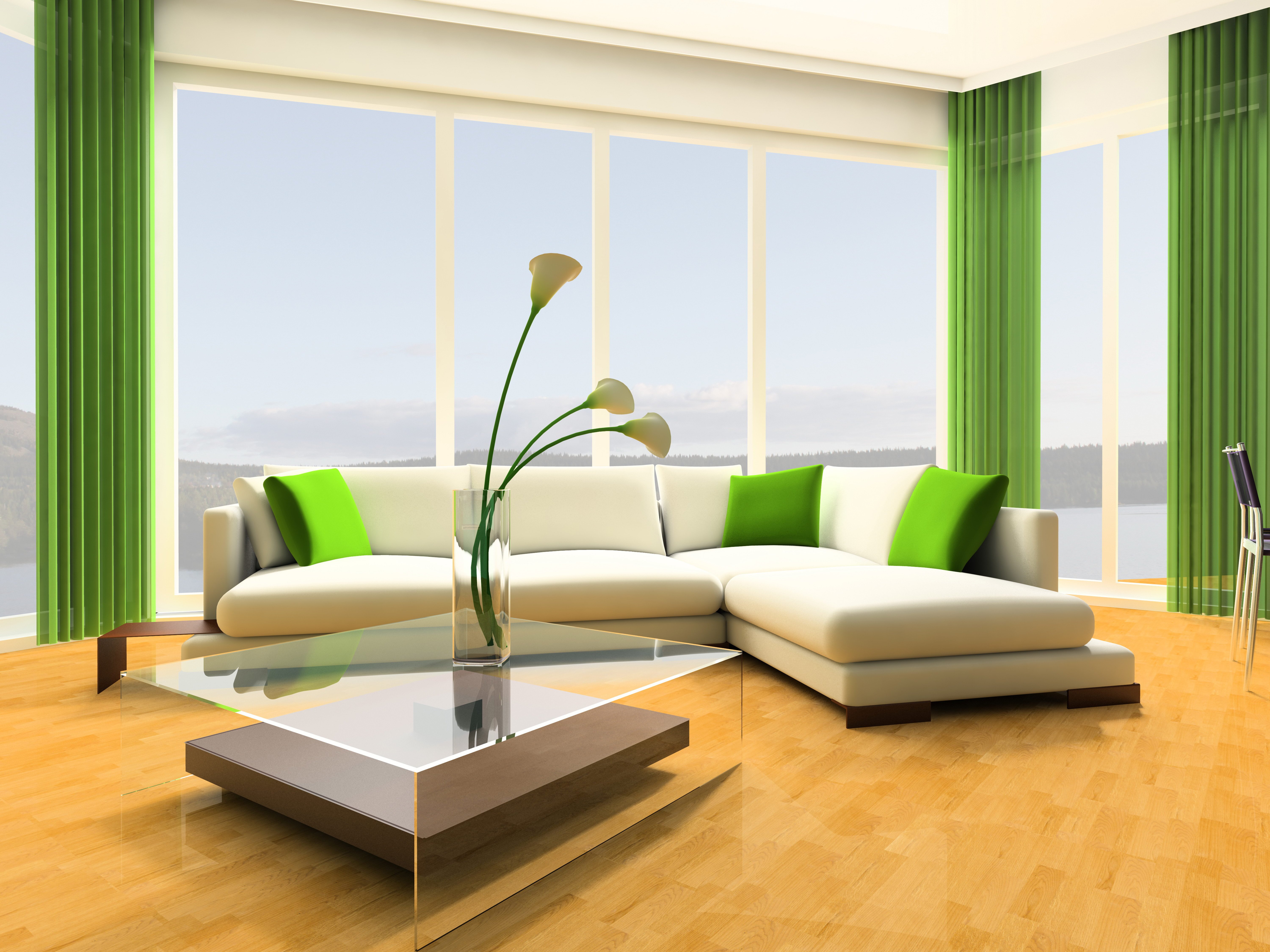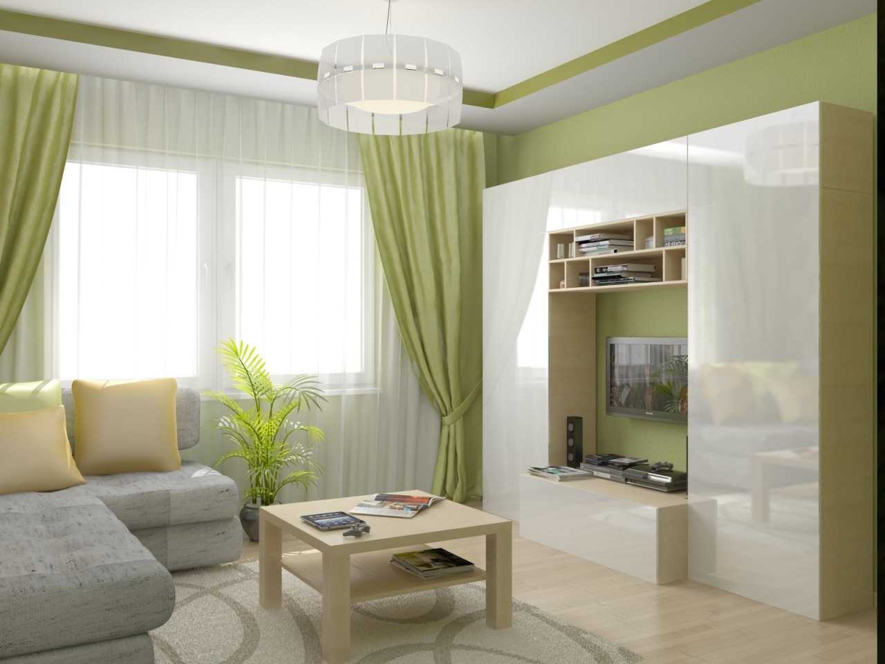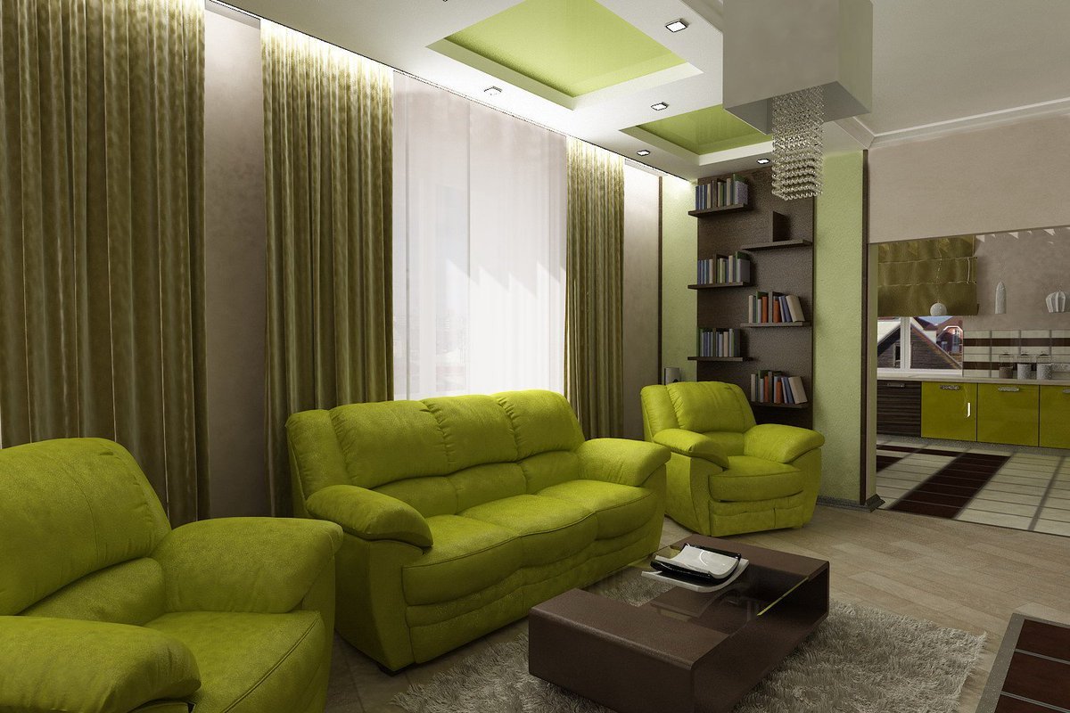 La tendencia de usar el verde en el interior apareció no hace mucho tiempo, desde el momento en que apareció la moda de un diseño conciso pero positivo. Dependiendo del tono elegido, las cortinas pueden decorar la sala de estar, el baño, la cocina, el dormitorio o el pasillo. Destacó la facilidad del ambiente rural de las cortinas verdes en la veranda. Considere ejemplos ilustrativos del uso del color más familiar para el ojo humano en habitaciones individuales.