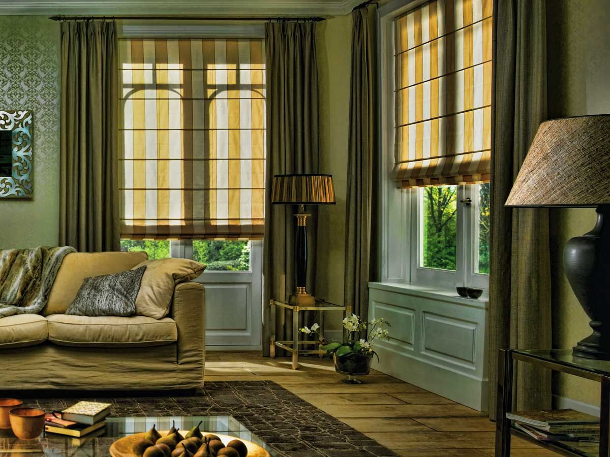 Austriaco Las cortinas alrededor del perímetro tienen cintas especiales que tiran del lienzo a lo largo de líneas verticales, formando numerosos pliegues.