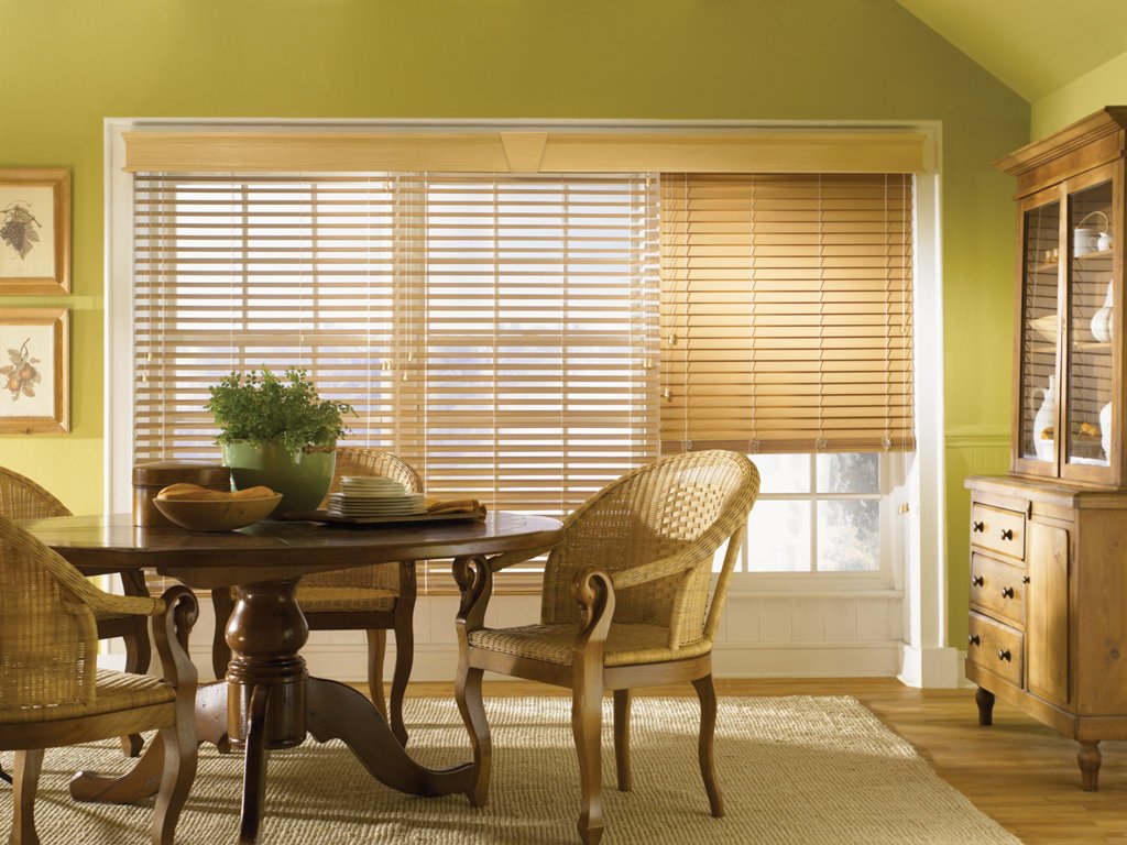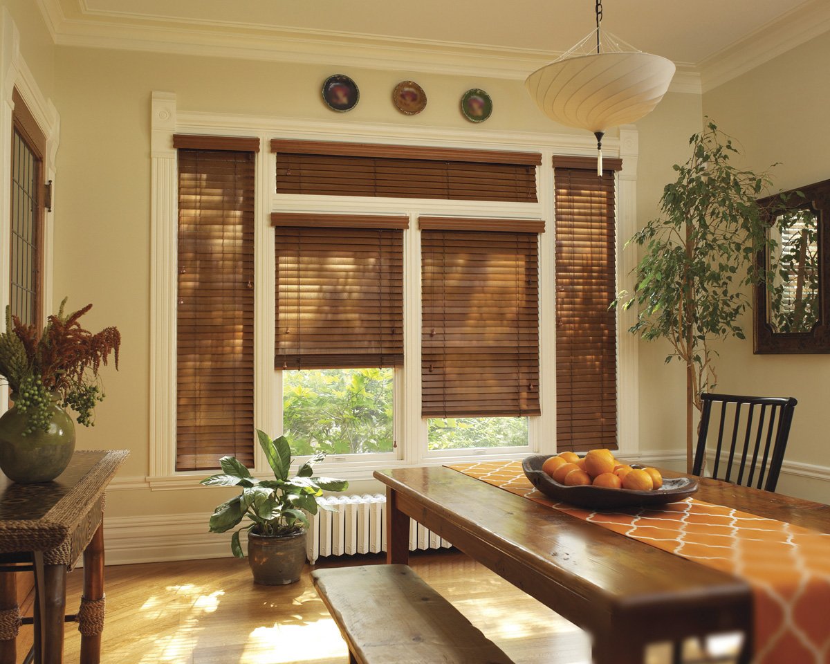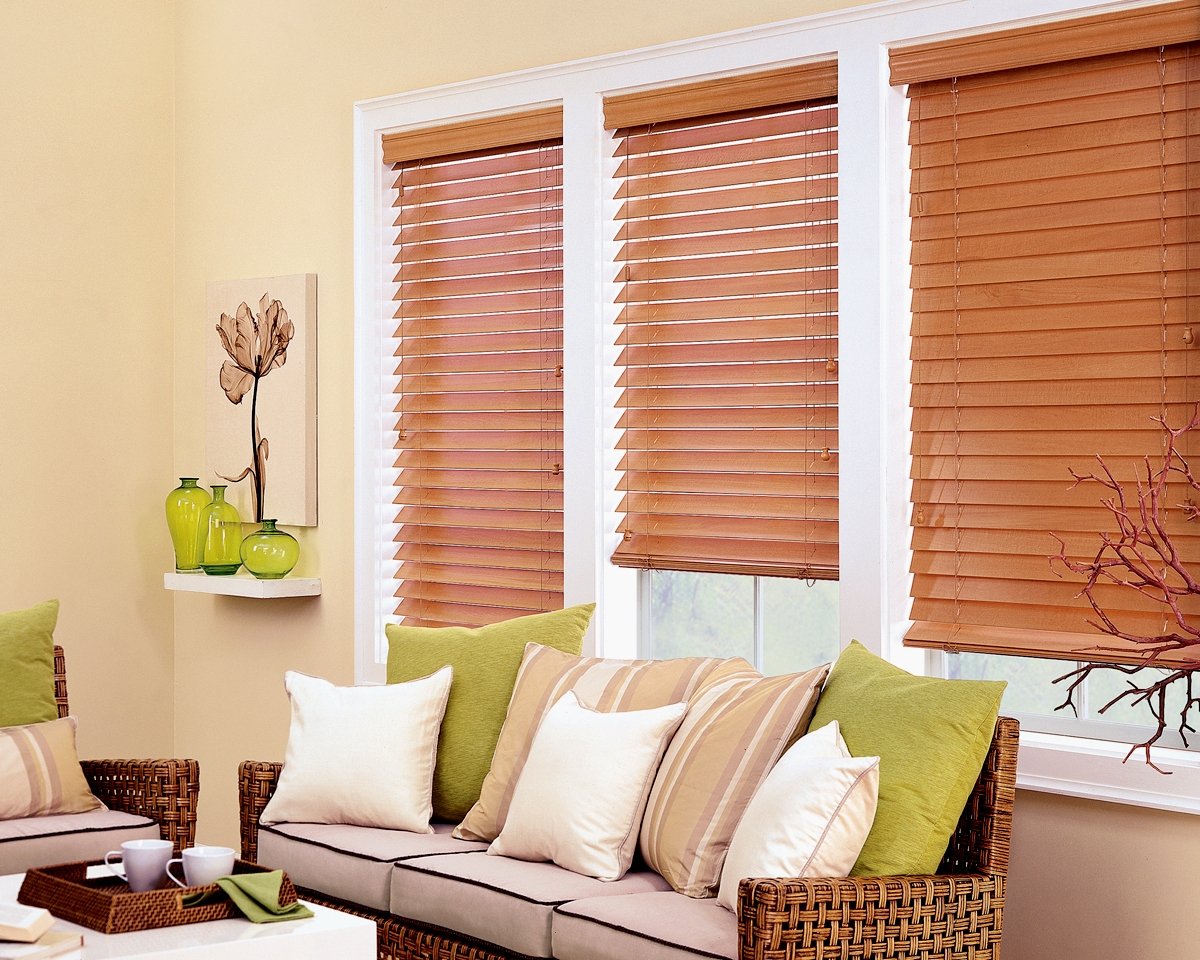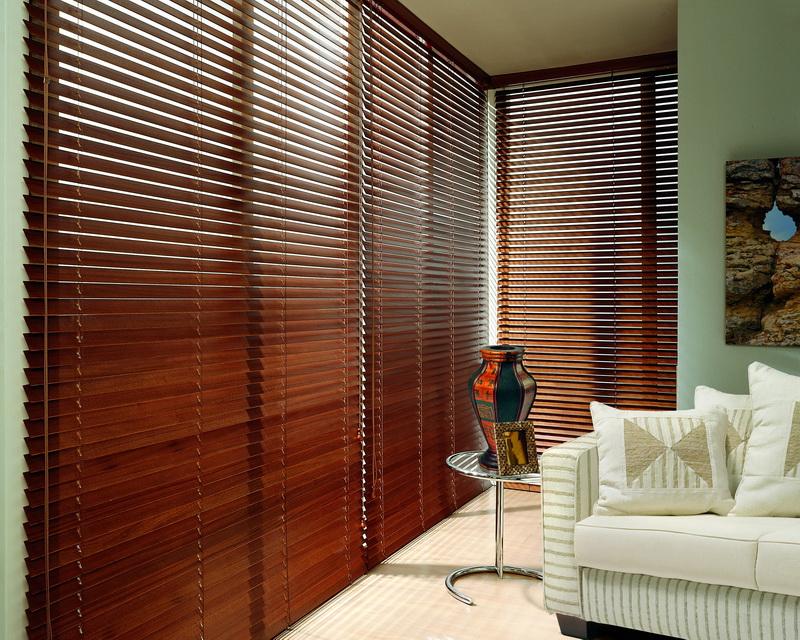Las primeras persianas fueron de madera. Este material sigue siendo popular ya que la madera es fácil de integrar en cualquier entorno. El árbol aporta un ambiente cálido y confortable a la habitación. El costo de tales persianas deja mucho que desear. Se aplican composiciones especiales al material, que evitan la penetración de humedad en los poros de la madera y su posterior hinchazón, deformación. Sin embargo, incluso la impregnación no salvará el material del fuego cuando esté en contacto con una llama abierta. No se recomienda colgar tales estructuras en la cocina cerca de la estufa o en la sala de estar al lado de la chimenea. Para la fabricación de láminas, se utilizan tipos de madera que tienen un peso pequeño.Debido a este diseño no cede con el tiempo.