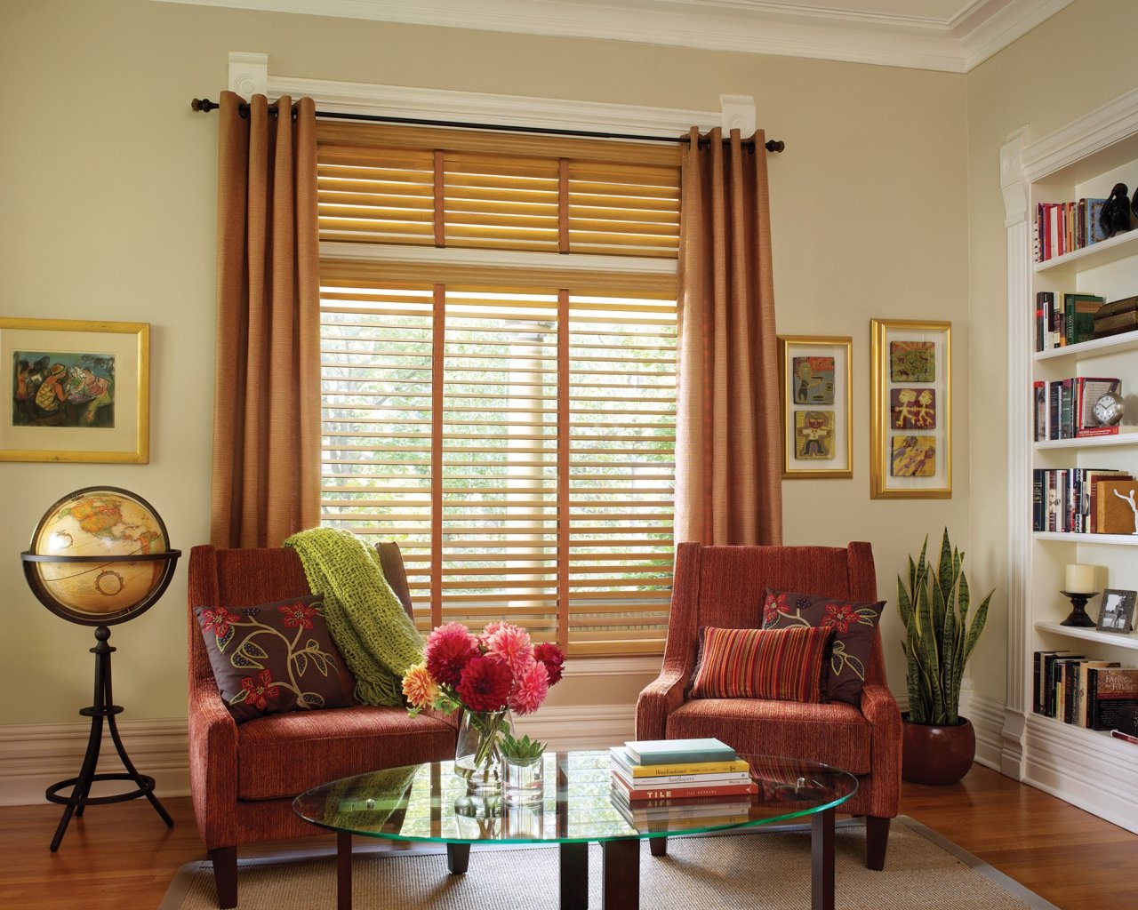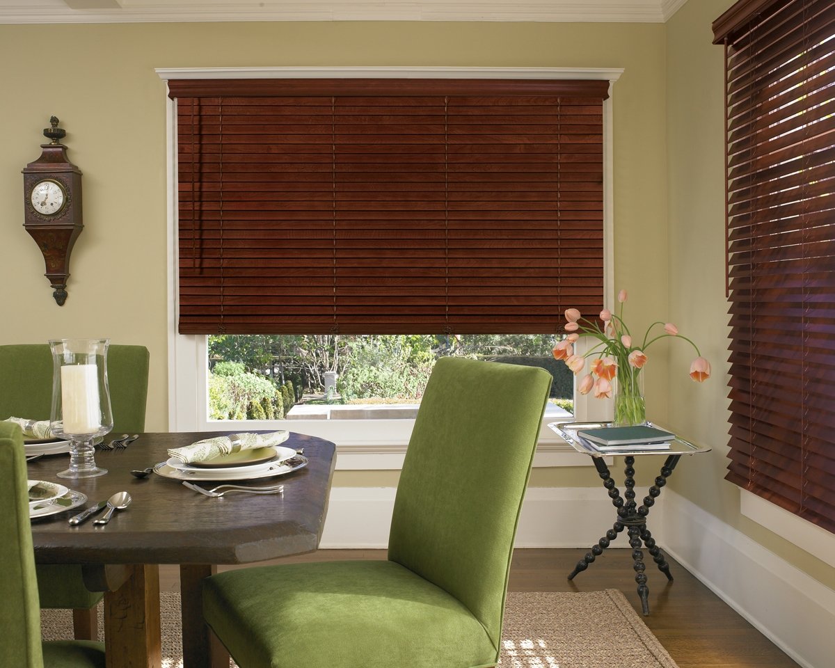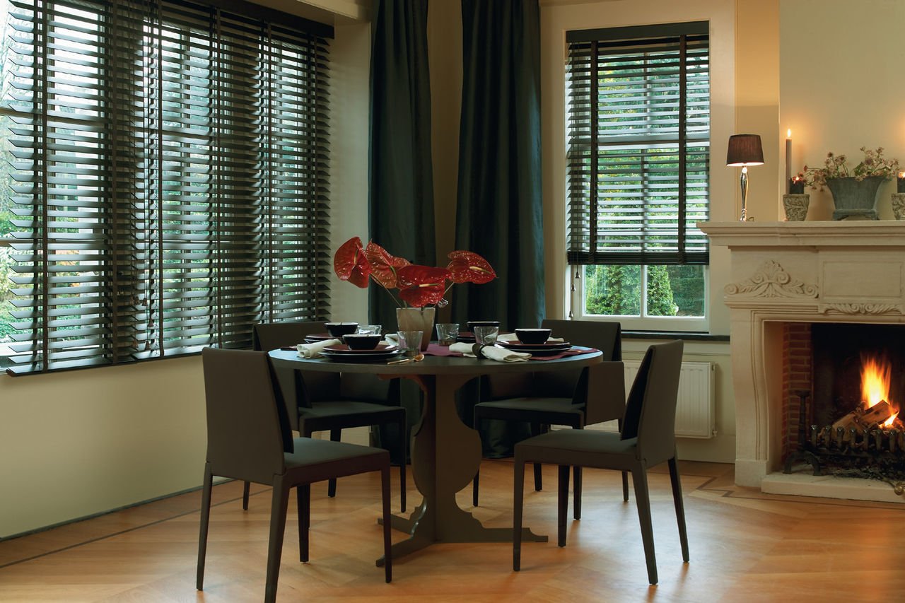 Las primeras persianas fueron de madera. Este material sigue siendo popular ya que la madera es fácil de integrar en cualquier entorno. El árbol aporta un ambiente cálido y confortable a la habitación. El costo de tales persianas deja mucho que desear. Se aplican composiciones especiales al material, que evitan la penetración de humedad en los poros de la madera y su posterior hinchazón, deformación. Sin embargo, incluso la impregnación no salvará el material del fuego cuando esté en contacto con una llama abierta. No se recomienda colgar tales estructuras en la cocina cerca de la estufa o en la sala de estar al lado de la chimenea. Para la fabricación de láminas, se utilizan tipos de madera que tienen un peso pequeño.Debido a este diseño no cede con el tiempo.