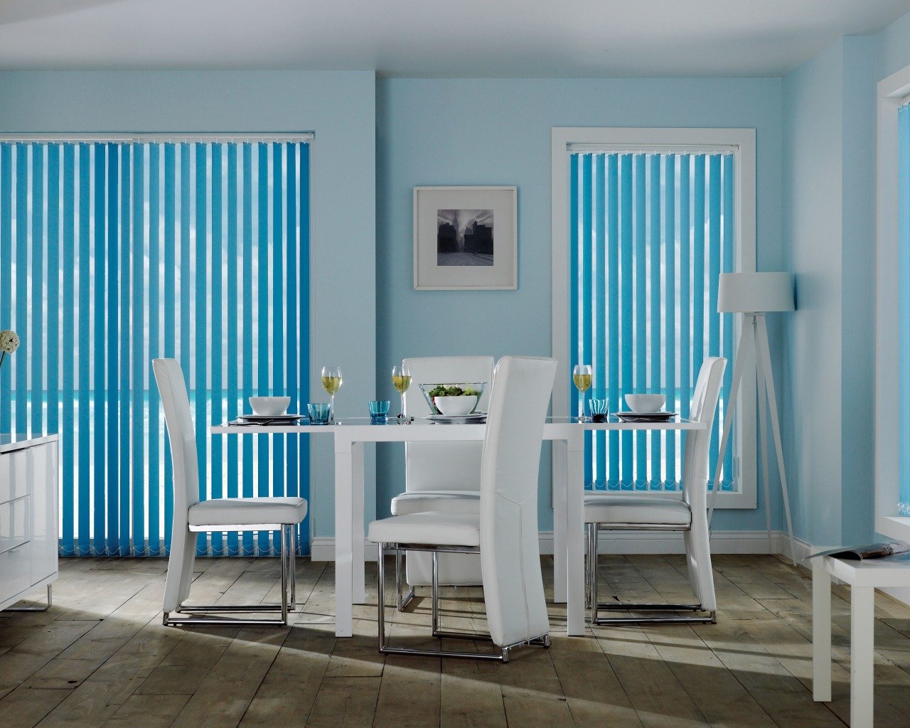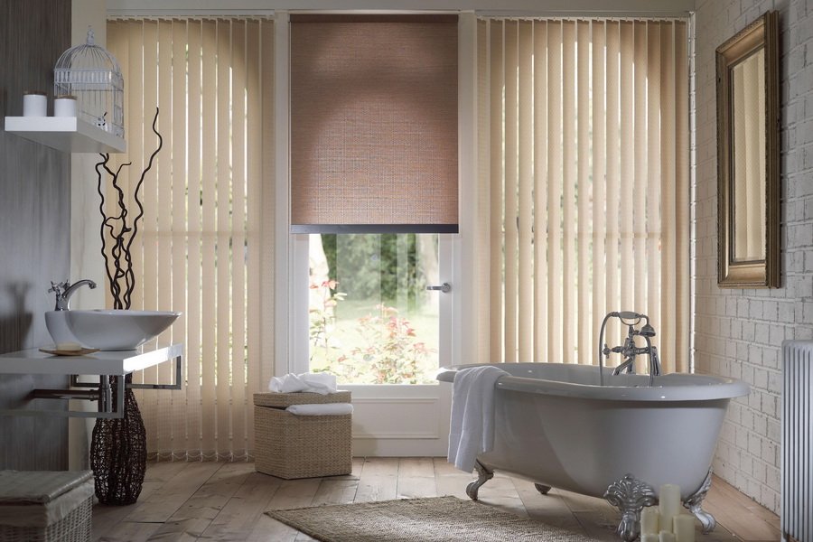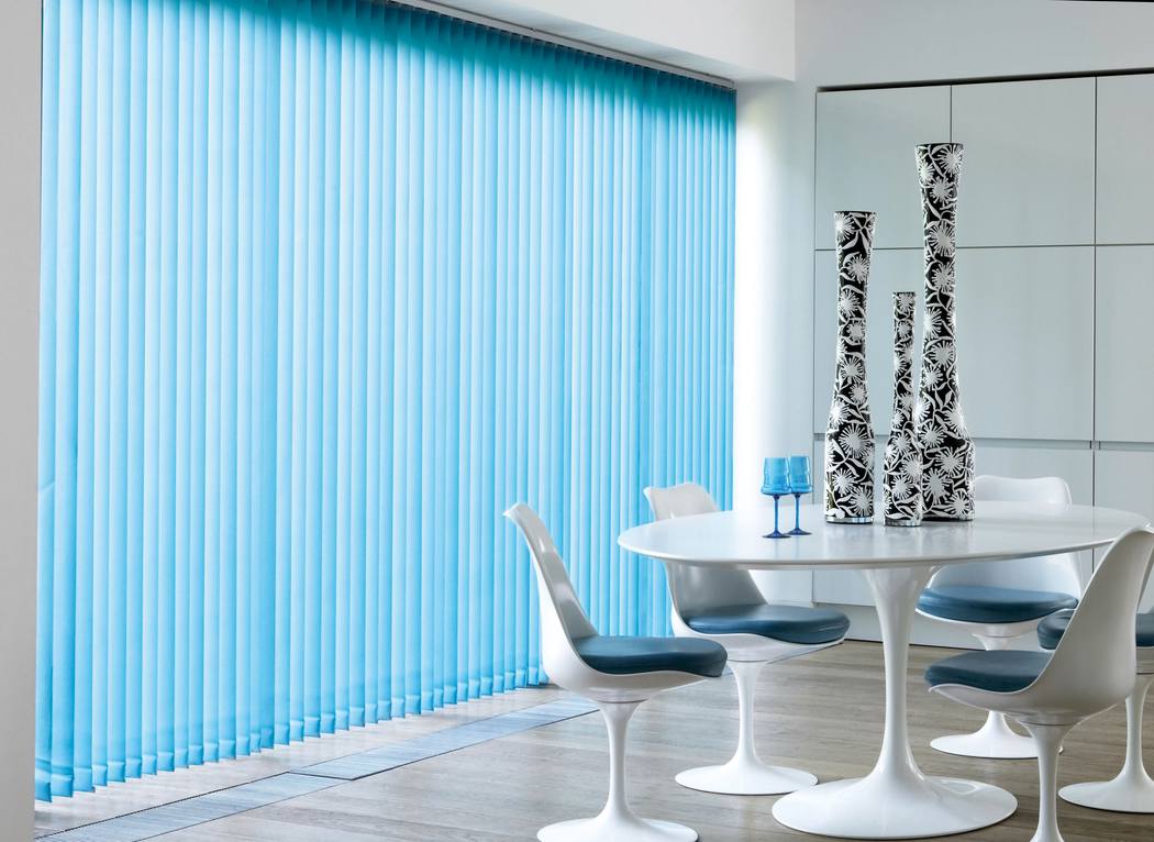 Para el dormitorio y la habitación de los niños, se recomienda elegir persianas ecológicas hechas de madera o bambú. Es deseable que su superficie conserve su color natural, ya que tiene un efecto calmante. También es aceptable comprar persianas de papel o tela para estas habitaciones. Sin embargo, en el último caso, no se recomienda a las personas alérgicas que usen textiles. Aunque las láminas de tela están tratadas con repelentes de polvo especiales, no vale la pena correr el riesgo.En la sala de estar, puede experimentar con colores, usar dibujos vibrantes, impresión de fotos con múltiples texturas. En interiores modernos, las estructuras verticales similares a las cortinas de paneles se verán orgánicamente. Las persianas de aluminio, plástico y bambú son ideales para la cocina. Los motivos florales o culinarios en las superficies de las láminas se verán orgánicamente. Para diseñar un baño, generalmente eligen persianas confiables de aluminio o plástico que no temen a la humedad. Su superficie, como regla, está decorada con patrones marinos temáticos (olas, peces, medusas, guijarros, corales). El esquema de color principal está representado por tonos típicos: blanco, azul, azul, turquesa.