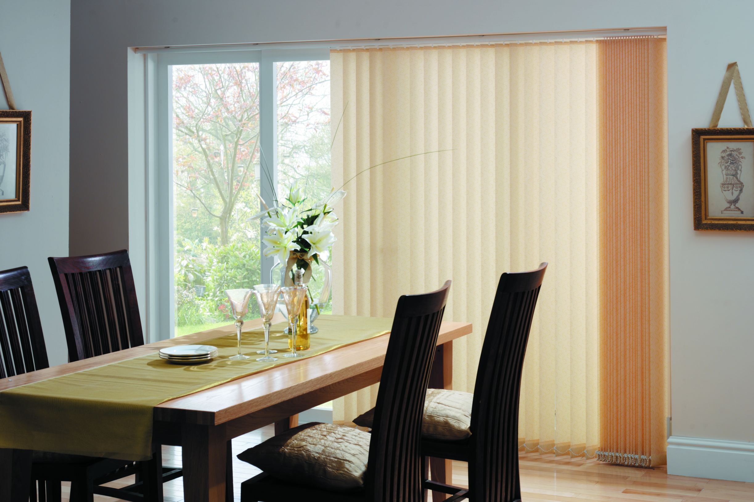 Vertical. La opción es adecuada para habitaciones con techos bajos. Las lamas se colocan verticalmente. Además, son simples y con un patrón.