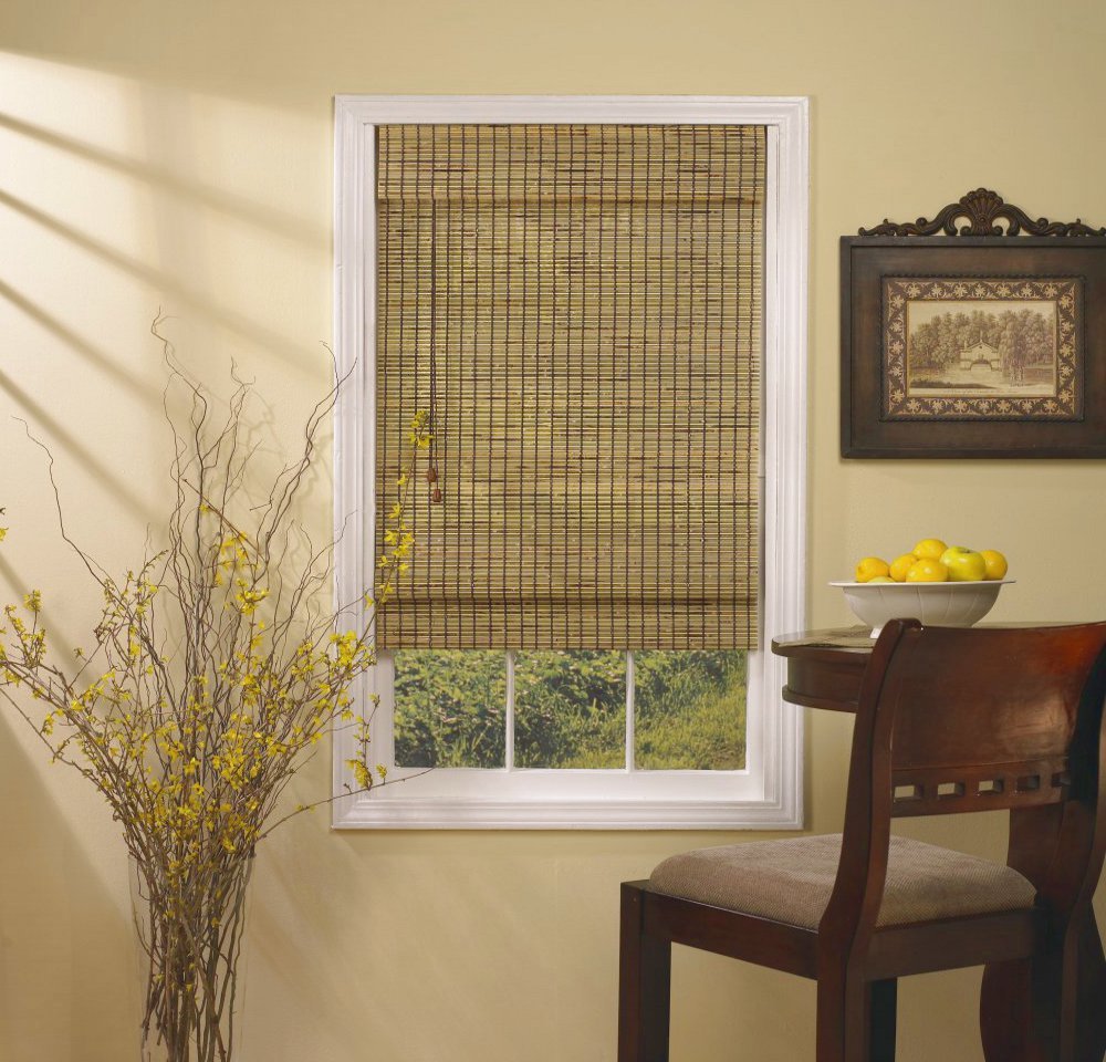 Las persianas de bambú están hechas de material ecológico. Las laminillas finas tienen una apariencia presentable, colores naturales agradables y poco peso. El marco rígido no permite que las persianas delgadas se deformen.El material es adecuado para decorar ventanas en el baño y en la cocina, ya que no teme el contacto con el agua. Esta opción es ideal para el estilo étnico japonés y su modesto "pariente" más cercano: el minimalismo. Los apartamentos decorados con esteras, shoji en lugar de puertas y linternas toro se combinarán armoniosamente con persianas de bambú. Las lamas se pueden hacer no solo a partir de placas lisas, sino que también tienen un tejido y una textura originales.
