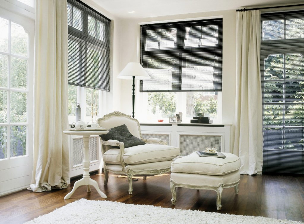 Las persianas se consideran un elemento universal de la decoración de ventanas. Incluso encajarán en interiores clásicos, si elige un diseño romano con adornos florales en la superficie del lienzo. Las persianas sin pretensiones de colores estrictos hechas de PVC, aluminio y papel se combinan con un estilo escandinavo loft, de alta tecnología y moderno. Las láminas de colores brillantes y texturas inusuales fluirán hacia el eclecticismo y la fusión. Las persianas de madera y bambú se combinan con el estilo ecológico, el minimalismo y la etnia japonesa. Los diseños romanos y laminados de colores claros o con un patrón floral discreto se adaptarán a la dirección italiana romántica, shabby chic, provenza. Es difícil adaptar las persianas al estilo vintage y retro. Las láminas de color marrón oscuro se combinan bien con muebles de madera e incluso elementos de hierro forjado, si las ventanas están decoradas adicionalmente con cortinas de luz, con el único fin de decorar la abertura.