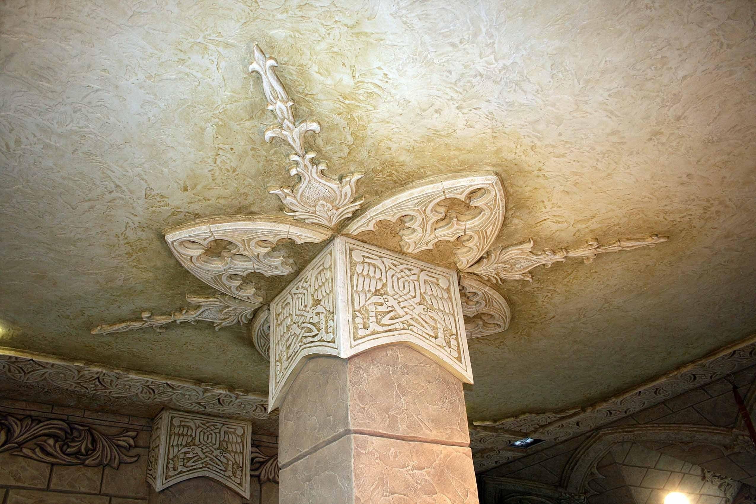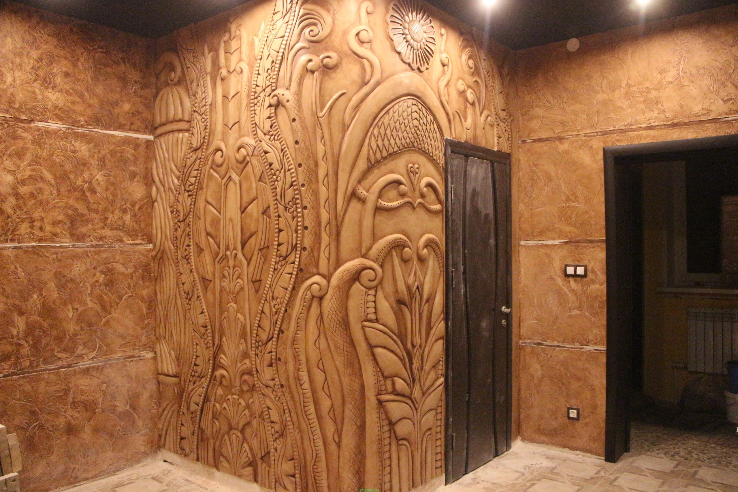 El bajorrelieve enfatiza perfectamente la peculiaridad del estilo étnico, independientemente de qué país sea el interior.